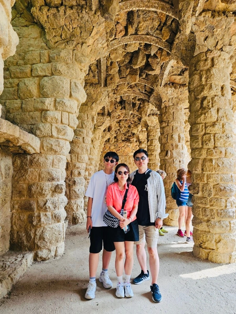 다음 가우디 유산의 행선지는 구엘공원이었다. 분양 안되었던 구엘저택이 전 세계 사람들이 모이는 문화유산이 되었다는 것도 놀라웠지만, 가우디의 명량한 상상력들의 집이 놀이동산을 온 것처럼 기분이 좋아지는 건축물이었다. 아들이 어릴 때 그렸었던 구엘 공원 그림을 보니 더 동심에 빠진 느낌이었던 거 같다. 더워도 즐거웠던 한때의 가족사진을 많이 남길 수 있어서 좋았다.