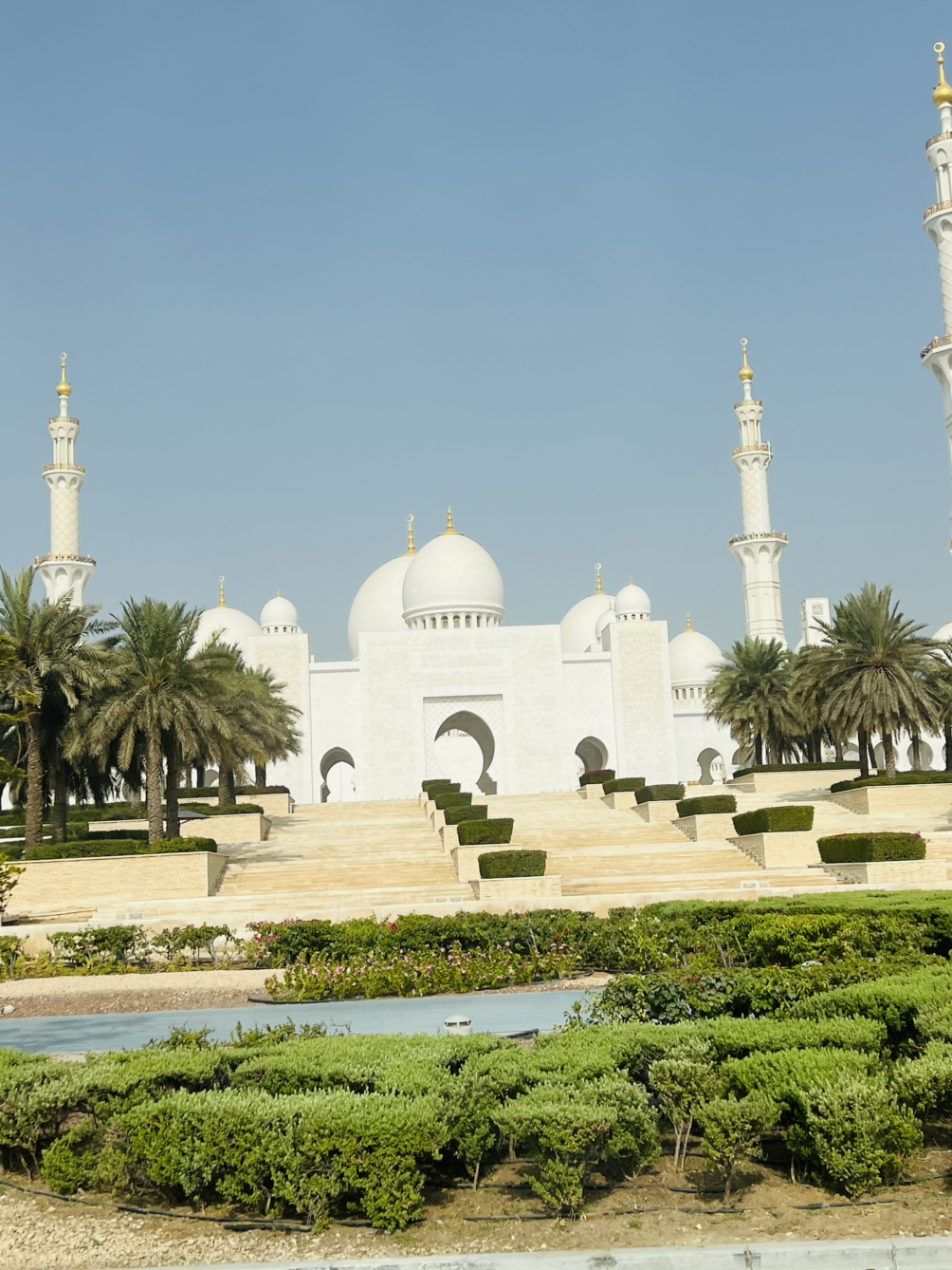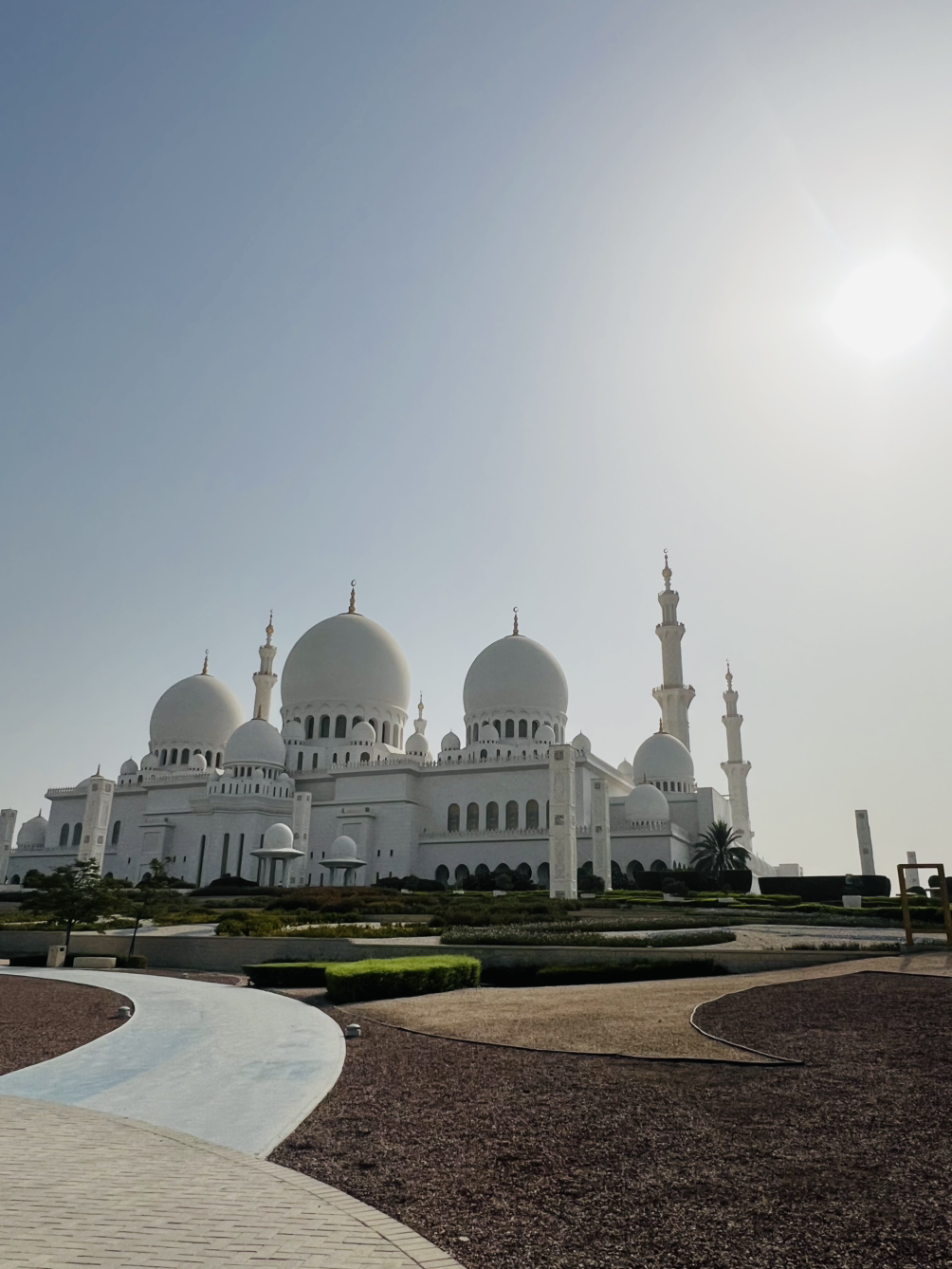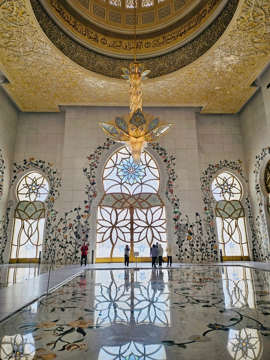 렌터카를 타고 찾은 첫 도착지는 아부다비를 대표하는 셰이크 자이드 그랜드 모스크(Sheikh Zayed Grand Mosque) 사원이었다. 순백의 대리석 건물이 햇살을 받아 반짝이고, 82개의 돔과 높은 첨탑이 웅장하게 서 있었다.