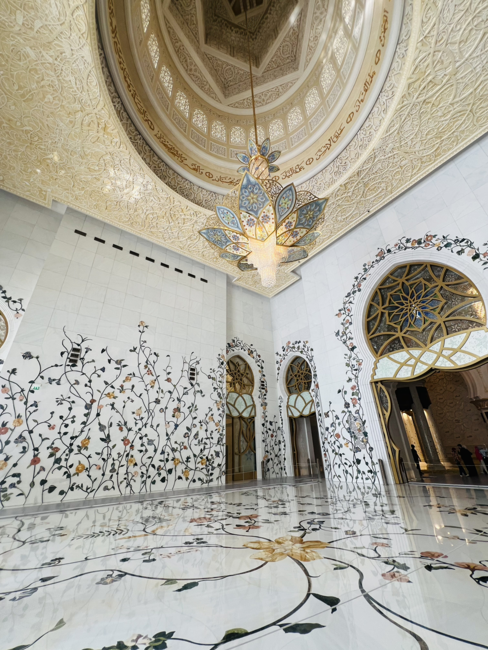 내부 바닥에는 세계에서 가장 큰 핸드메이드 카펫이 끝없이 이어지고, 머리 위에는 수천 개의 크리스털이 빛나는 거대한 샹들리에가 황홀하게 내려와 있었다.