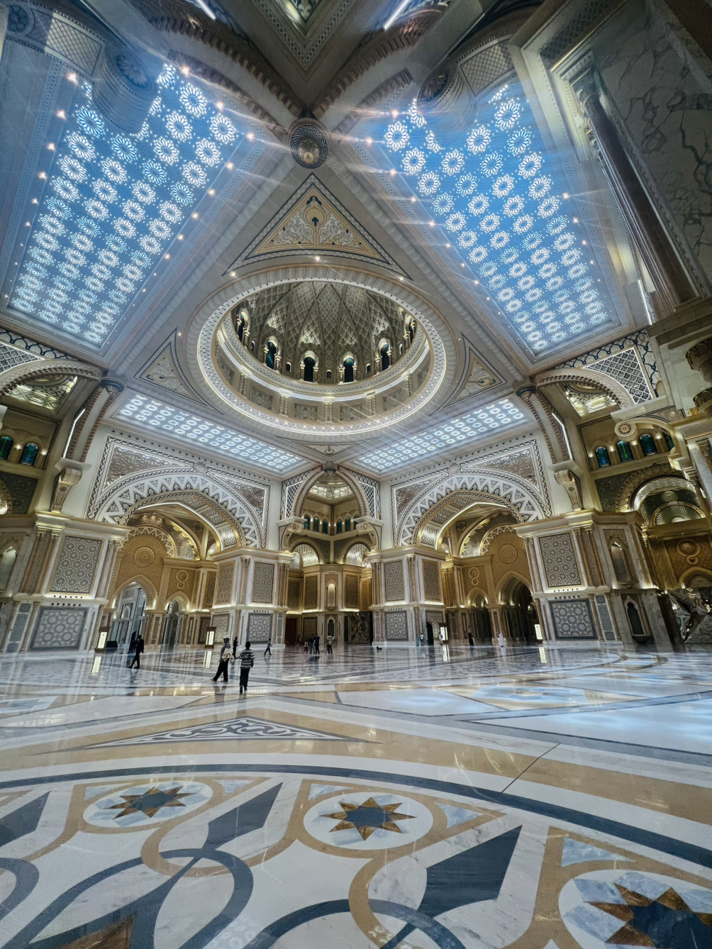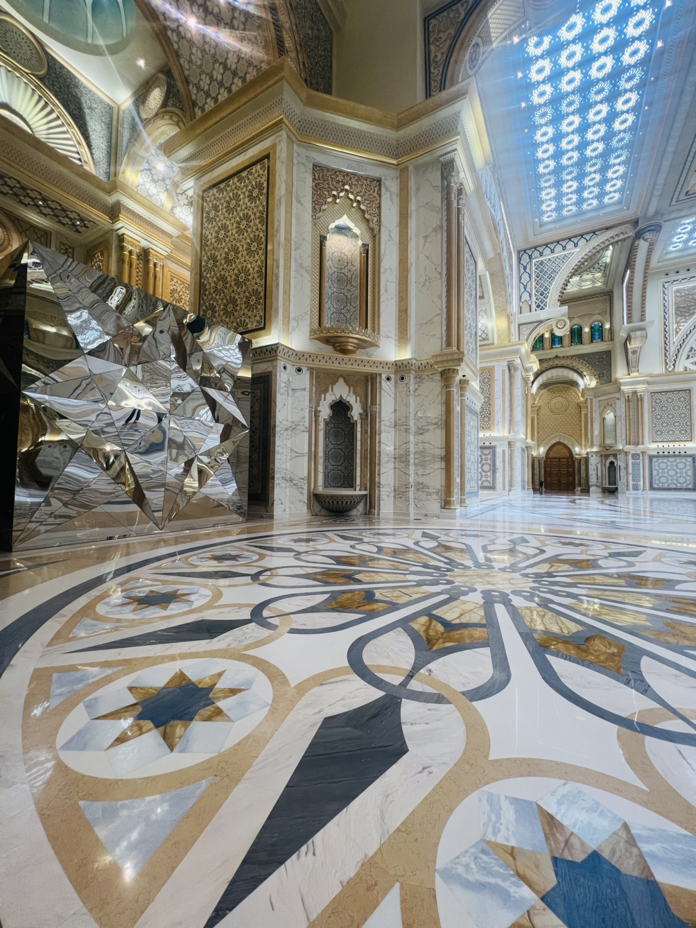 아부다비의 상징인 셰이크 자이드 그랜드 모스크에서 흰 대리석 아치와 장엄한 내부를 둘러본 뒤, 우리는 또 다른 랜드마크인 알 와탄(Qasr Al Watan) 왕궁으로 향했다. 모스크가 신앙의 평화와 영혼의 안식을 상징한다면, 알 와탄은 국가의 자부심과 미래를 보여주는 공간이었다.