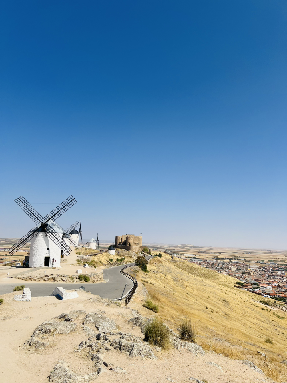 이곳은 세르반테스의 소설 『돈키호테』에서 주인공이 풍차를 거인으로 착각해 싸우는 장면의 배경으로 알려져 있다. 실제로 언덕 위에 줄지어 선 하얀 풍차들을 마주하니 마치 시간을 거슬러 온 듯 고즈넉했고, 언젠가 원작을 다시 읽어보고 싶다는 생각이 들었다.