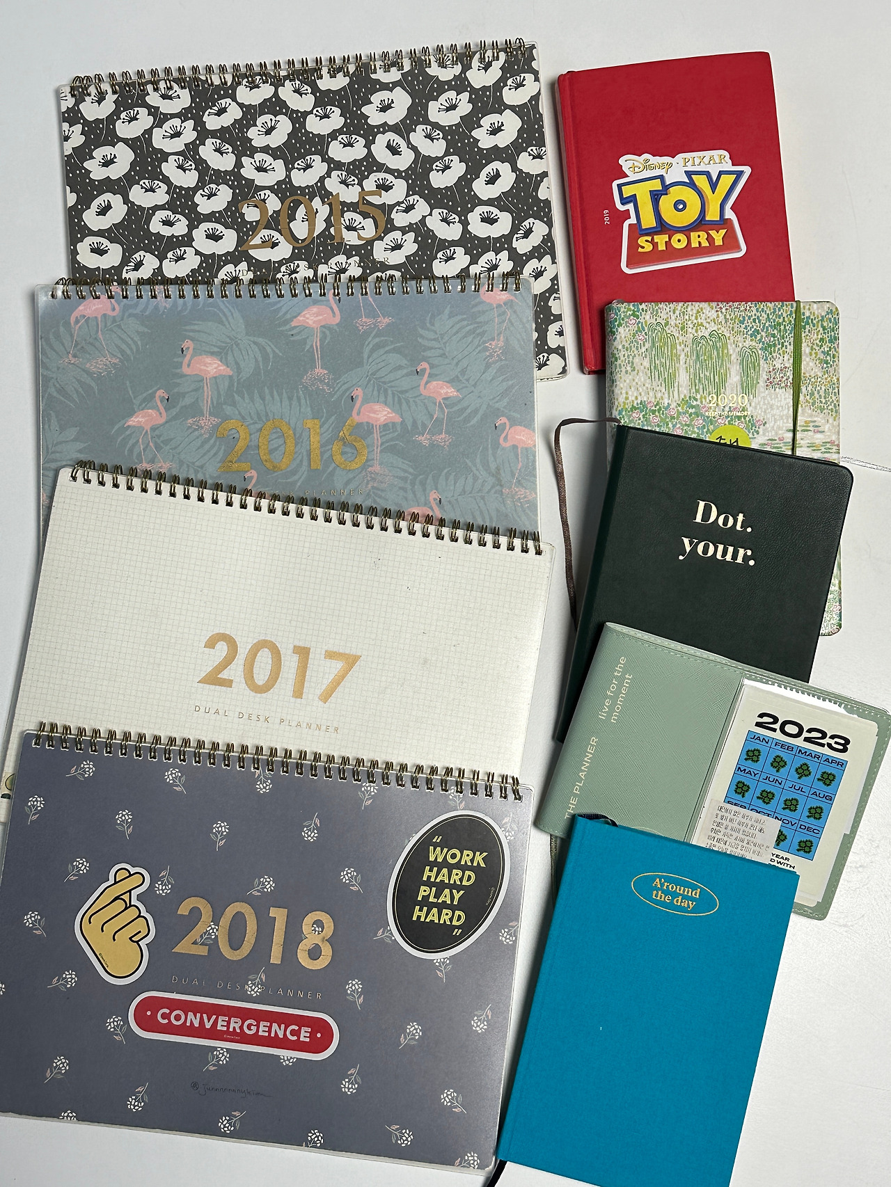 그렇게 2016년도부터 올해 2023년까지 총 10권 가까이 되는 기록들이 쌓였다. 여전히 일기 쓰는 시간은 나에게 하루의 가장 중요한 시간으로 차지하고 있고, 스스로 더 단단한 나를 만들 수 있는 습관으로 유지 중이다. 정말 무탈하기도 했고, 행복하기도, 슬프기도 했던 하루하루를 덤덤히 채운다. 오늘도 나는 살아있음을 남긴다.