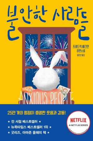 <불안한 사람들>의 작가 프레드릭 베크만의 책에는 항상 귀여운 일러스트가 등장한다. '불안한 사람들'이라는 제목과는 다르게 꽤 귀여운 토끼가 창가에서 피자를 먹으며 불꽃놀이를 보는 모습이다. 일러스트처럼 이야기는 가볍게 시작한다. 집을 보러 온 사람들. 그 집을 차지하고 싶은 사람들의 은근한 경쟁과 집을 보러 온 부부의 반목. 그곳에 갑자기 강도가 등장하면서 이야기는 분위기가 달라지는 듯 하더니 프레드릭 베크만만의 유머러스함은 그 강도가 장난감 총을 든 여자강도라는 설정으로 이상하게 흐른다.