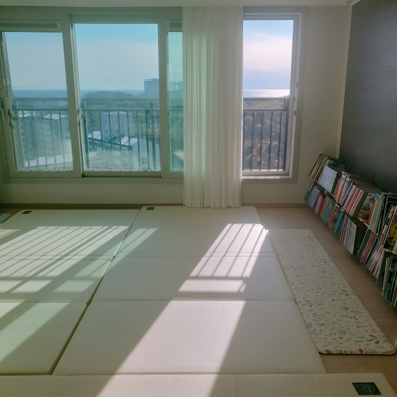 바닥에 매트를 깔고 있어서 로봇청소기 사용이 조금 번거로움이 있다.