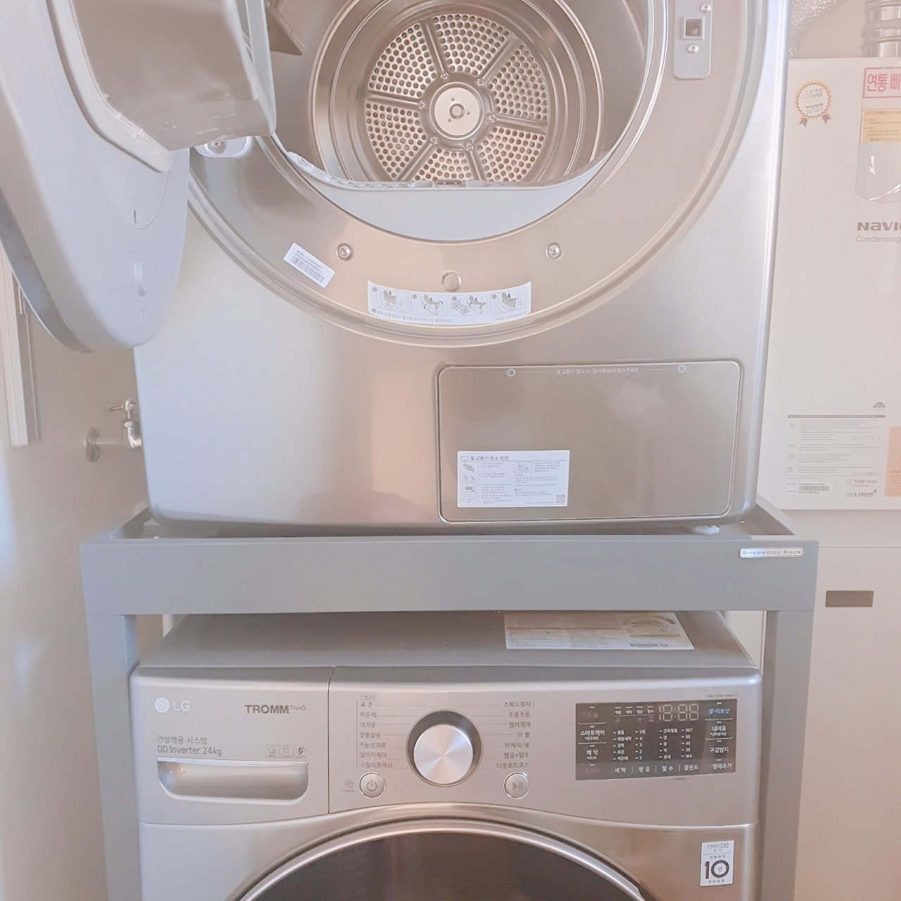 이불 빨래도 자주 하고 싶어 세탁기와 건조기 둘 다 큰 용량으로 구입했다.