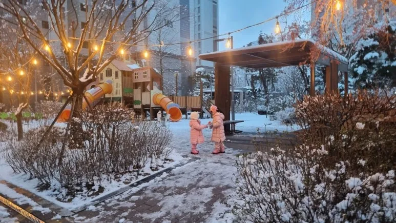 초등학교에 입학한 첫째 아이 등교 날에도 눈이 가득한 길이었다.