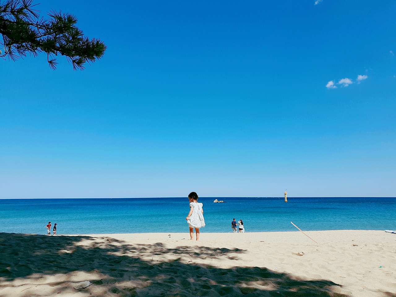 어느새 속초에서 처음 맞이하는 여름이 되었고 맨발로 청간해변을 걷게 되었다. 1분도 채 지나지 않아서 신발을 다시 신고 행선지를 옮겼다. 신발에 감춰져 있던 두꺼운 모래의 촉감이 거칠고 따가웠다. 주변을 둘러보니 어린아이 가족단위보다 고등학생 이상의 가족단위나 성인들 무리만 주로 보였다. 아야진, 삼포, 송지호 쪽이 모래가 부드러워 여름에 어린아이들이 놀기에 좋다. 그중에서 아야진은 물 깊이도 얕아서 여름철에는 주말 아침에 가도 주차할 곳이 잘 없다. 우리의 아지트 해변에서 여름을 즐길 수 없게 되자 새로운 곳이 필요했다. 그렇게 발견한 곳이 고성에 공현진 바닷가이다. 처음에는 1리 바닷가를 가보고 그다음에 2리를 찾았다. 바다 바로 앞에 소나무 가득한 솔밭이 있다. 높은 소나무들이 만들어내는 그늘 아래는 시원했고 맑고 청명한 바닷물은 외국 해변처럼 상큼했다. 좋아하는 나무와 바다를 한 번에 누릴 수 있는 조용하고 한적한 이 곳에 단번에 반해버렸고 우리 가족의 여름 아지트 해변이 되었다.