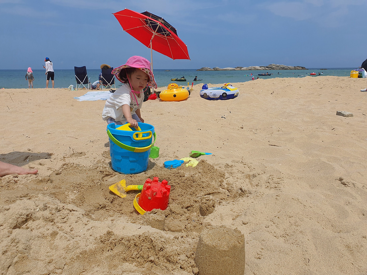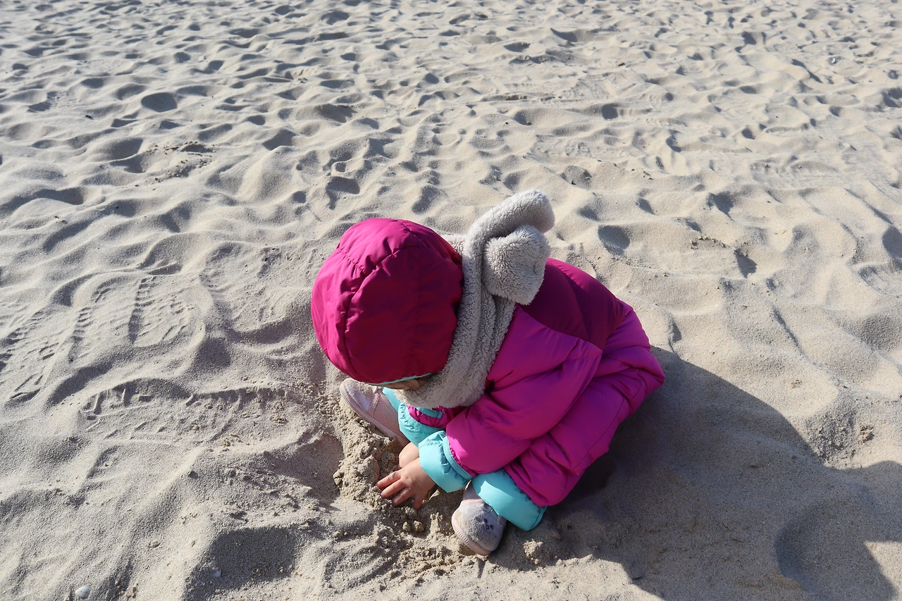 강원도 속초에는 동해바다가 주변에 즐비하다. 집에서 도보로 10분이면 속초해변에 갈 수 있고 차로 20분 안이면 다양한 바다를 즐길 수 있다. 두 살 때부터 바닷가 모래와 만나기 시작한 꼬맹이. 입으로 가져가고 코로 가져가며 온몸으로 모래를 느끼면서 어느새 모래와 친구가 되었다. 조개껍데기를 모으고 모래를 퍼 나른다. 물을 뿌렸다가 다시 물통에 담는다. 쌓아진 모래성을 보면 단숨에 부셔버린다. 모래와 함께면 추운 바람도 뜨거운 햇살도 딸아이를 비껴간다. 날이 따뜻해지고부터는 주말마다 간단히 짐을 싸고 바닷가로 향한다. 신나게 모래놀이를 하다 보면 한 시간이 뚝딱 흐른다. 간단한 간식을 먹고 쉬었다가 다시 놀기 시작한다. 오후의 시간을 보내고 집에 갈 때면 차 안 시트 바닥에도 꼬맹이의 마음에도 모래가 쌓여간다.