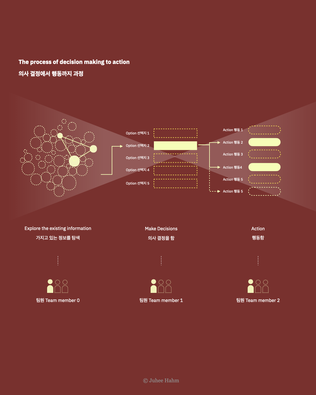 정보의 흐름은 권력 혹은 의사결정 과정과 근접하게 맞닿아있다. 조직 내에 혹은 조직 사이의 많은 문제가 정보, 권력, 행동의 의무 사이의 관계를 인지하지 못할 때에 생긴다고 생각한다. 이것을 드러내는 방법으로 나는 정보를 구조화하고 여러 사람과 정보를 교류하는 도구인 데이터 시각화를 사용한다.