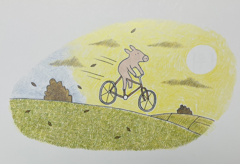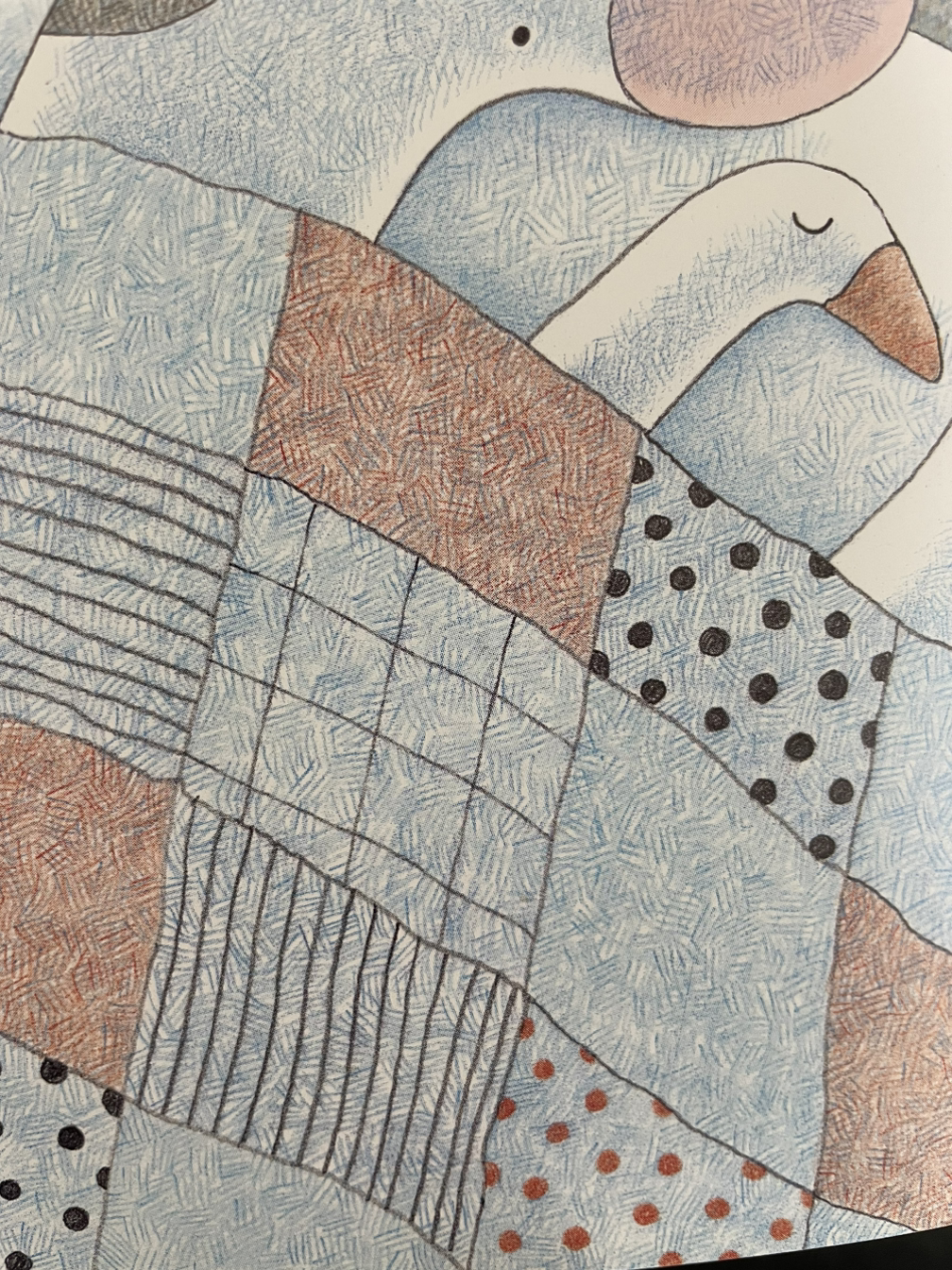 그림 기법도 살펴본다. 색연필을 사용한 듯한 그림은 색을 단순히 칠하는 대신 여러 색을 조합한 패턴을 반복해 질감을 만들고 있다. 태양은 흰 부분을 그대로 동그랗게 남겨두고 주변을 노랗게 칠하는 방식으로 표현하고 있고, 햇빛이 새벽 어스름을 몰아내는 장면은 하늘의 파란색과 노랑이 적절히 섞여 있는 모습으로 표현하고 있다. 속으로 그림을 따라 그려보며 이 작업이 얼마나 독창적인지, 또 얼마나 반복되는 고된 작업일지 생각한다.