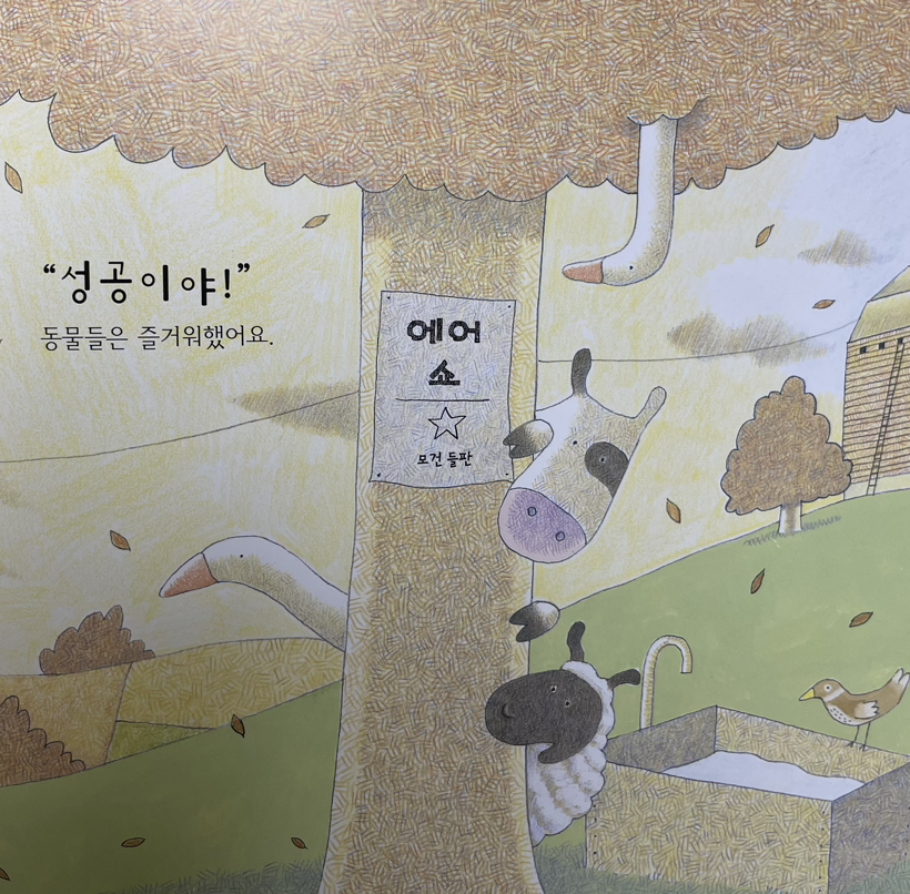 『뒤죽박죽 농장의 비행사들』이라는 그림책을 예로 들어보자. 이 그림책은 농장 동물들이 졸리 아저씨를 도와 성공적으로 비행기 에어쇼를 마친다는 이야기를 담고 있다.