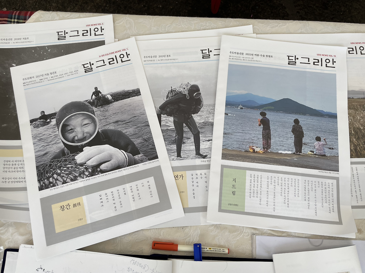 그녀의 설명에 따르면 우도 사람들은 멍게 철에도 한 집이라도 땅콩 파종이 끝나지 않으면 물질을 가지 않고 다 같이 도울 정도로 공동체 정신이 강했다. 점점 기술이 들어오고 생활은 편리해졌지만 우도를 개발해야 한다는 입장과 보존해야 한다는 입장이 나뉘어 주민 간 갈등이 심화되었다고. 그런 상황 속 우도의 계간지 달그리안은 공동체 정신과 '우도다움'을 지키기 위해 만들어졌다고 한다.