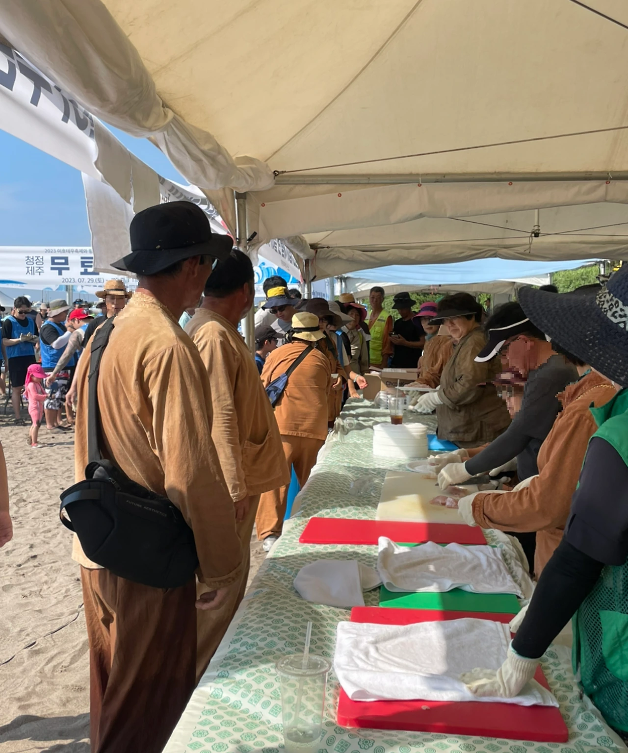 그 와중에도 축제를 위해 차린 부스에서는 이호동 자원봉사자 분들이 축제 성황을 위해 소원 쓰기 이벤트나 테우 만들기 체험을 진행하고 있었고, 심지어 기름을 두르고 지름떡을 구워 내시던 분들도 있었다. 하지만 30도를 훌쩍 넘긴 더위에 태양의 열기를 그대로 담은 흰 천막 근처로 얼씬거리는 사람은 보기 힘들었다. 인근 카페로 피신하면서도 혹시나 올 관광객들을 위해 자리를 지키고 있는 분들에게 자꾸만 눈길이 갔다.