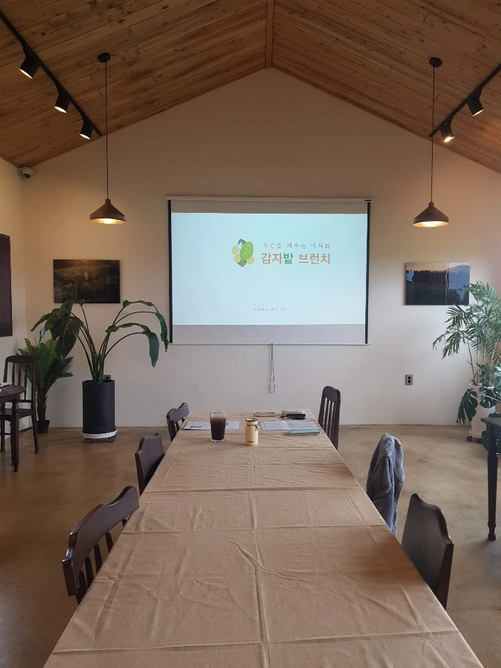 내가 신청한 것은 ‘감자’를 주제로 한 식문화 워크숍. 짓다에서 재배한 감자를 주제로 농부의 채소 도슨트와 자연주의 셰프의 요리를 맛볼 수 있는 자리였다. 채소 도슨트는 감자 하면 어떤 것이 떠오르세요? 라는 단순한 질문에서 시작해 감자를 둘러싼 오해와 진실을 알아보는 시간이 되었다.