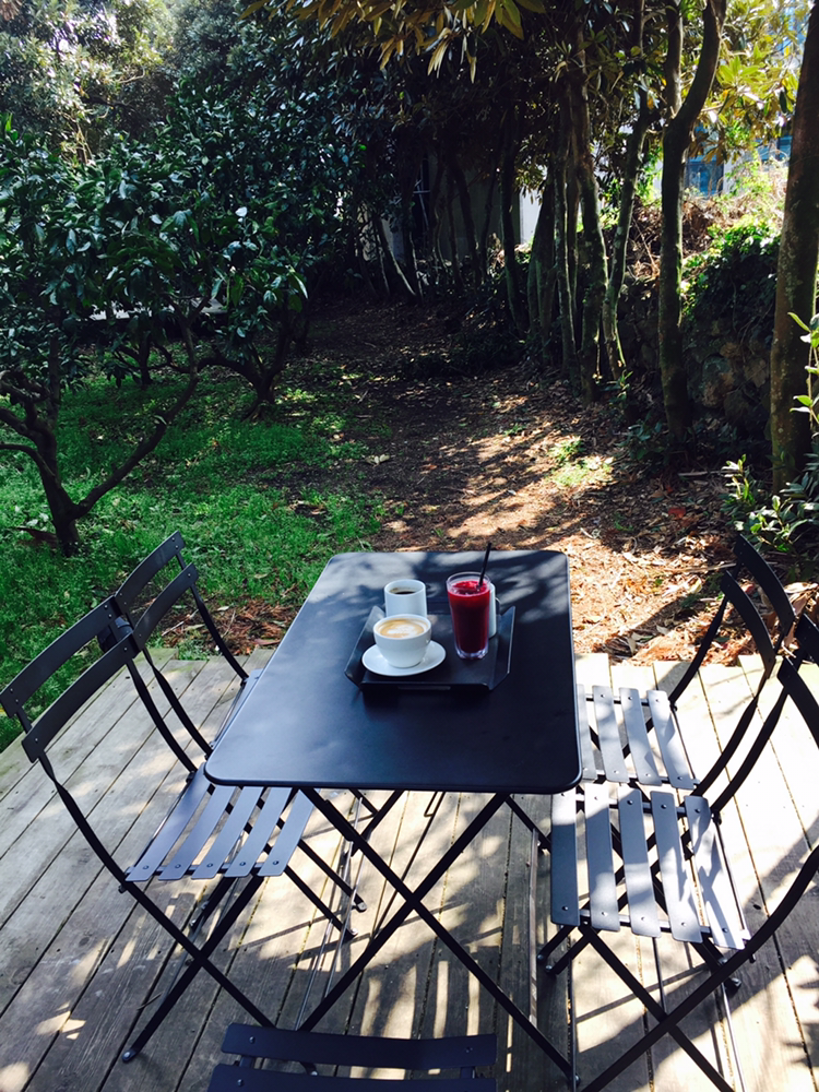 자리에 앉으면 귤나무가 보인다. 숲에 있는 듯한 착각을 들게 하는 테라스의 테이블에 앉아 커피를 마시며, 탁월한 공간 디자인에 감탄했다. 생산자의 관점에서 무척이나 고심한 흔적을 느꼈다. 자연스레 창업자의 스토리가 궁금해졌다. 40세를 앞두고, 은행을 그만두고 사업에 뛰어들었다, 25억의 빚더미에 앉았던 시절을 건너, 여기까지 왔다고 한다.