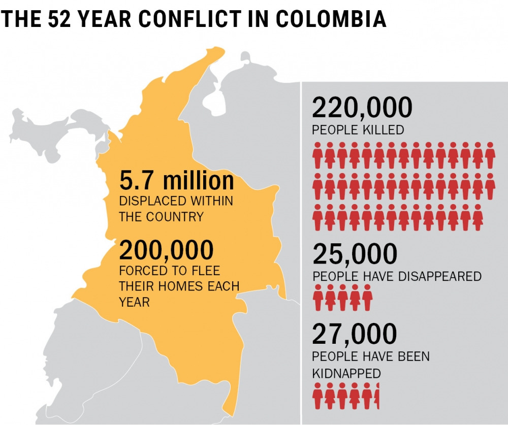 사실, 콜롬비아의 내전을 근본 원인을 이해하려면 다양한 사회 정치적 이해가 필요한데, 뿌리 깊은 불평등, 지도층의 부패, 권력 남용은 불평등한 토지분배 시스템, 불법 코카인 재배, 불법 금채굴, 산림파괴 등의 결과를 낳았다.