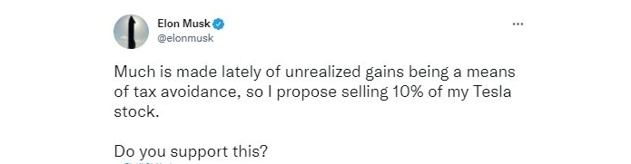 시장 전체가 일부 조정받는 시기기도 했지만 테슬라의 조정폭이 상대적으로 컸습니다. 이는 일론 머스크의 주식 매각 이슈가 큰 원인이었습니다. 시작은 보유 주식 일부를 매각해 스톡옵션으로 인해 발생하는 세금을 내는 것에 대해 어떻게 생각하냐는 일론 머스크의 트위터였습니다.
