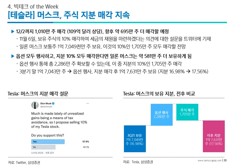 주식은 매각하지만 지분은 확대하고, 자사주 매각에 따른 책임을 트위터 설문에 전가하는 머스크 다운 해결책이 아니었나... 개인적으로 생각해봅니다.