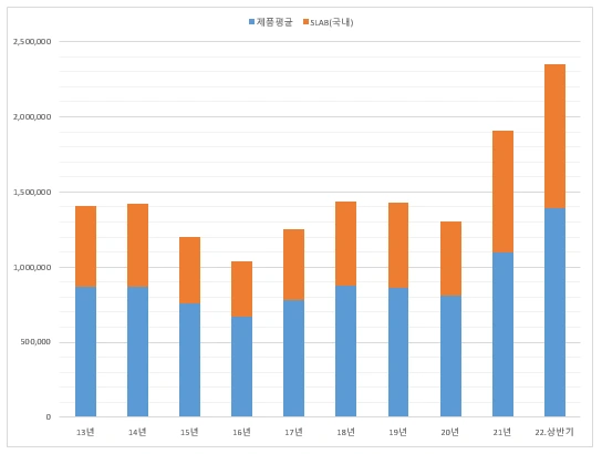 그러나 주력 상품인 인버티드 앵글의 경우 사실상 국내 시장의 경쟁사가 없습니다. 2013년까지 인버티드 앵글 시장은 현대제철과 화인베스틸이 양분하고 있었습니다. 그 이후 조선업 불황기에 현대제철은 생산 캐파를 축소했습니다. 화인베스틸도 42만 톤 생산규모를 유지한 채 추가 증설은 없었습니다.