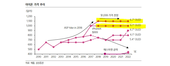 원자재 상승, 인플레이션 등으로 가격 인상이 예상되었으나 판매가는 13과 동일하게 출시되었습니다. 경기 불황으로 인한 수요 침체 우려 및 달러 상승으로 인한 신흥국 환율 효과 때문일 것으로 생각됩니다. 실제로 달러표시 아이폰 가격은 동결이나, 원화 표시 출고가는 15~20만 원가량 인상됐습니다. 유럽과 주요 신흥국에서도 비슷한 상황이 벌어지리라 생각됩니다.