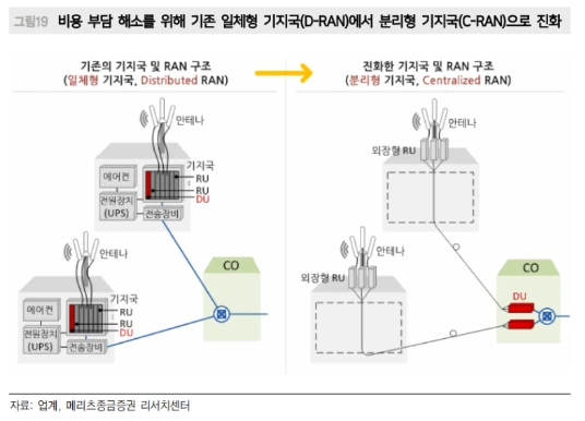 2. C-RAN : 데이터처리부(DU)와 송수신부(RU) 분리하여 RU를 더 많이 설치할 수 있게 됨