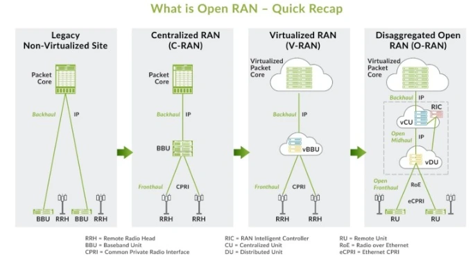 RAN은 디바이스와 기지국을 연결하는 장비입니다. RAN은 지금까지 뚜렷한 표준이 없었습니다. 그래서 특정 장비업체가 네트워크 구성에 독점적인 지위를 유지해 왔고, 통신사들이 일부 장비업체에 종속되는 결과를 낳기도 했습니다. 실제로 통신 장비 시장은 메이저 업체들이 과점하는 형태(에릭슨, 노키아, 화웨이 등)이며, 이들 기업이 기지국을 건설할 때 장비도 함께 판매해 왔습니다.