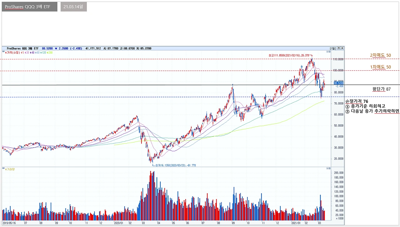 ④ ProShares QQQ 3배 ETF : 비중확대