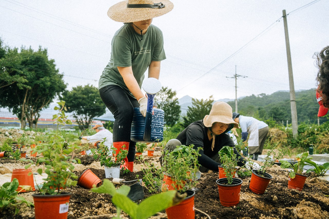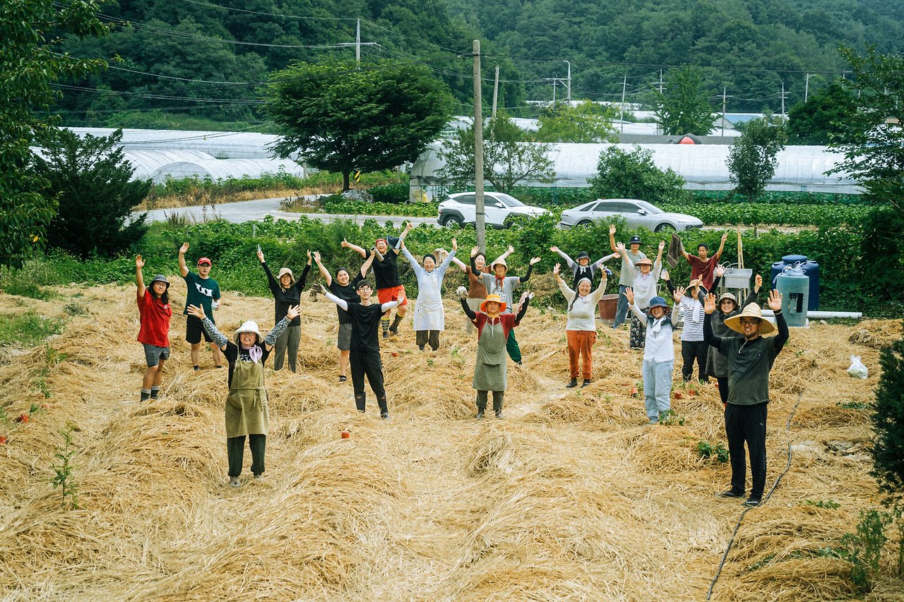 식재가 끝난 후에는 볏짚을 덮어준다. 논에 둥글게 말려있는 마시멜로우 모양의 흰 덩어리의 정체가 볏짚더미라는 것을 이 날 알게 되었다. 실제 명칭이 따로 있지만 다들 마시멜로우라고 부른다. 굴려서 위치를 잡는데, 무게가 상당하다. 성인 3명 정도 붙어서 굴려야 했다. 볏짚더미를 풀어헤치니 무언가 발효된 듯한 냄새가 났다. 볏짚에 발효균이 있어서 된장이나 술을 담글 때도 볏짚을 활용한다고 하는데, 태양볕아래 잘 말아놓은 마시멜로우 안에서도 발효가 일어나나 보다. 이 냄새 때문인지 볏짚을 온 밭에 다 깔 때쯤 되니 약간 어질어질한 느낌이 들었다.