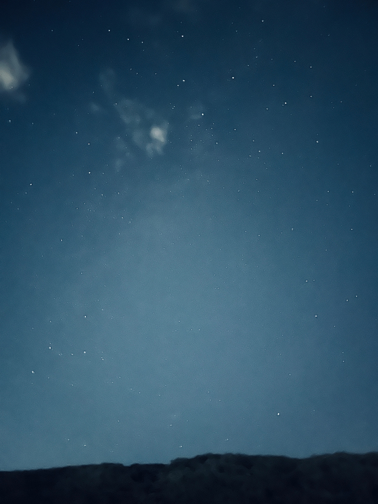 사실 바로 전날, 밤 11시 반 즈음 페르세우스 유성우가 떨어진다는 뉴스를 들었다. 몇몇 동문들은 소란 쌤과 함께 불빛 하나 없는 마을회관 앞 콘크리트 길에 누워서 페르세우스 유성우가 떨어지길 기다렸다고 한다. 대략 대여섯 개의 유성들이 시간차를 두고 떨어졌다고. 유성우 목격자들의 무용담에 나까지 마음이 설레는 기분이었는데, 잠이 많은 나는 그 전날도 새벽까지 술을 마시다 잔 탓에 도저히 늦게까지 깨어있을 수가 없는 체력이었다. 유성우를 보고 온 동문들의 한껏 들뜬 표정에 흐뭇한 엄마 미소를 짓고 있었을 뿐인데, 오늘 밤 이렇게 늦게 떨어지는 하나의 지각생 유성을 우연히 만나니 가슴이 뛰었다. 그것도 마침 여러 동문들과 함께 나가는 길에 한 신부님이 북두칠성 이야기를 하며 하늘을 가리킨 순간이었다. 그 신부님은 또 마침 별들의 밭을 디자인하여 채택된 주인공이라 더욱 의미심장했다. 별들의 밭을 만들고 만난 유성이라니.