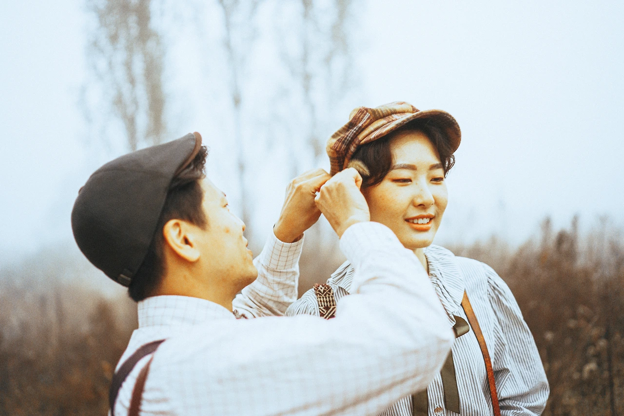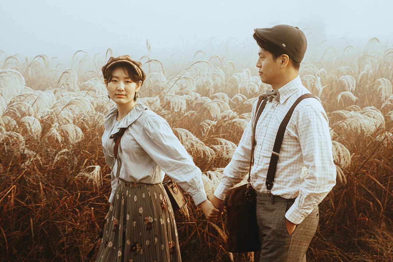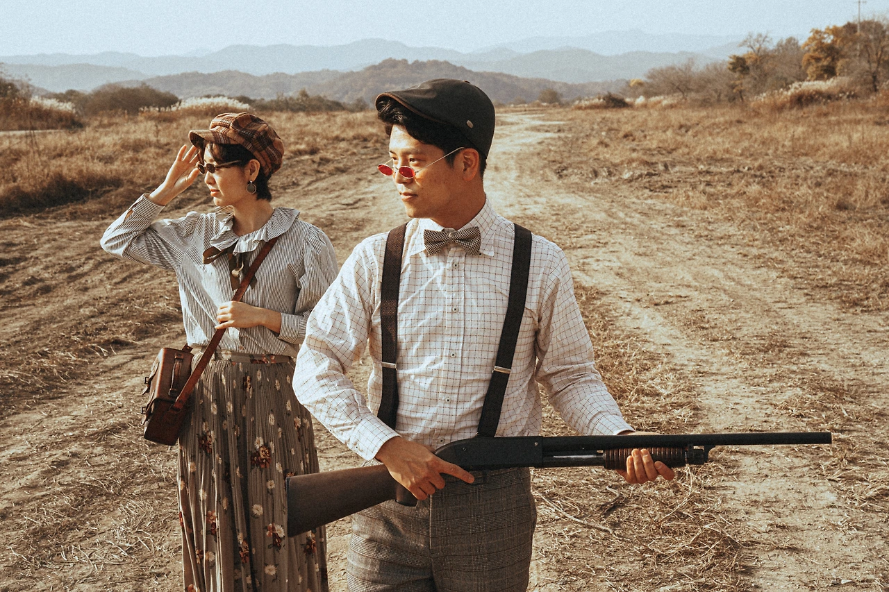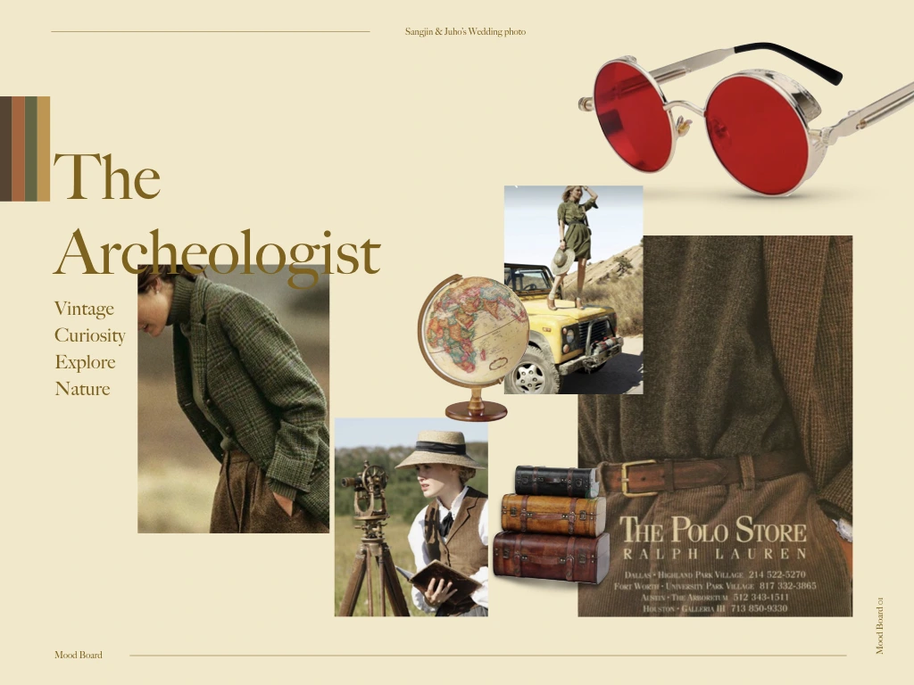 숙제를 받았다. 사진으로 남기고 싶은 우리의 이야기를 정해야 했다. 의욕이 넘치는 커플일수록 더 멋진 결과물이 나온다고 한다. 무척 설렜다. 찍어보고 싶은 컨셉이 계속 떠올랐다. 작가님이 만들어내는 빛바랜 느낌의 사진들이 내가 좋아하는 구제 옷들과 잘 어울렸다. 오지를 탐험하며 유물을 발굴하는 고고학자가 되어볼까? 논밭에서 작물을 서리하는 게으른 농부가 되어볼까?