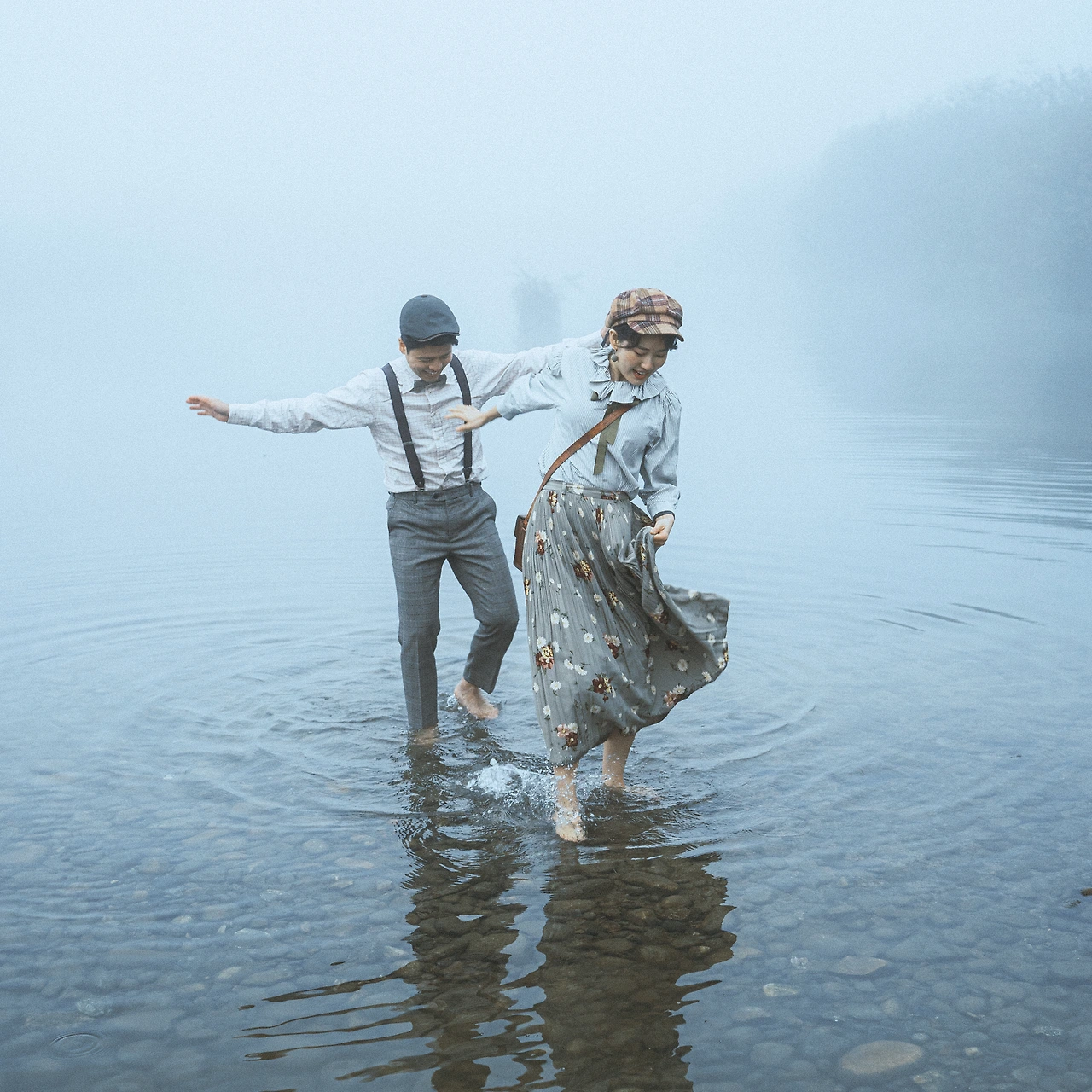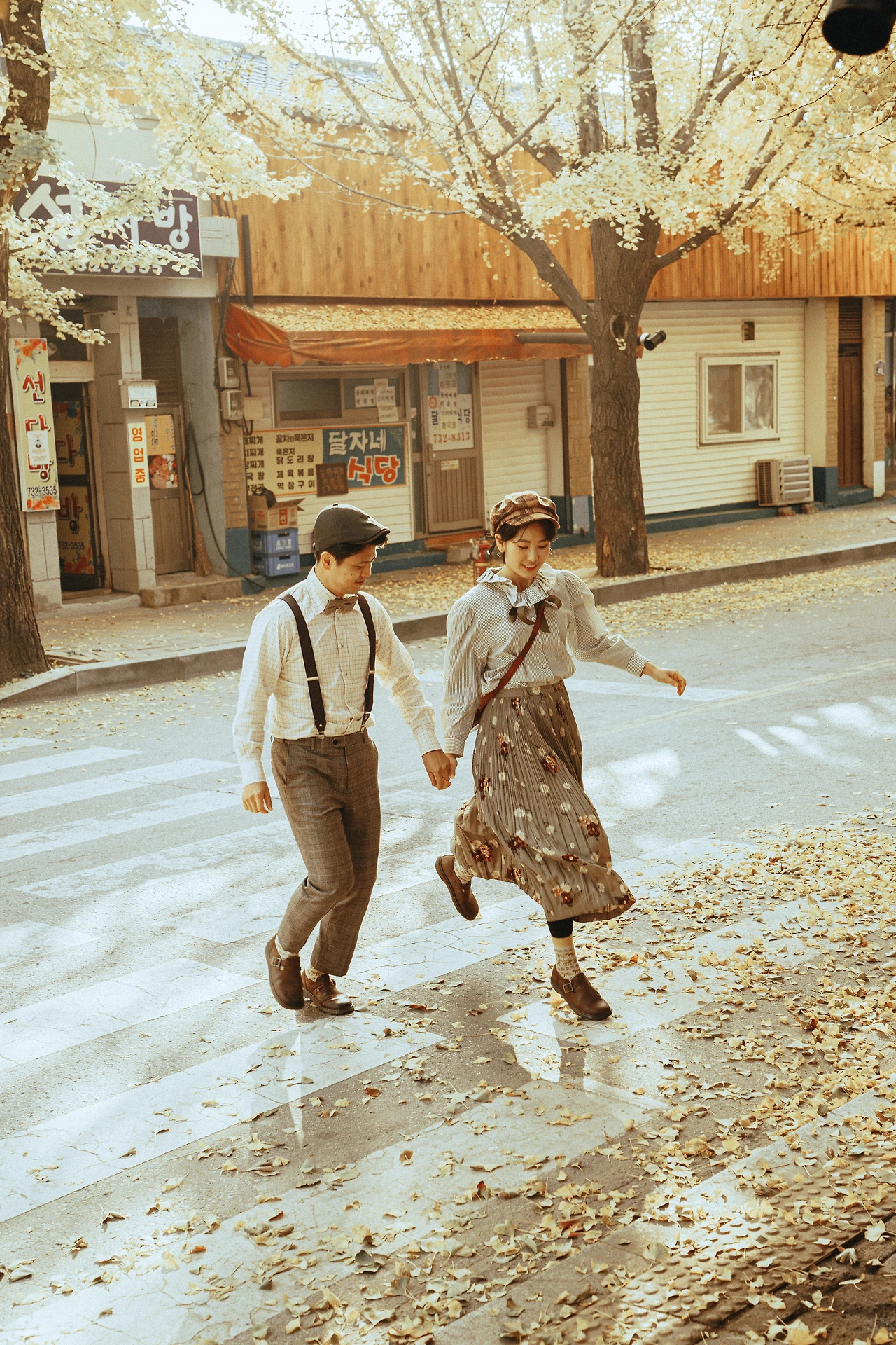 동묘에 있는 구제 시장에 가서 이런저런 소품을 샀다. 빈티지룩은 순전히 나의 평상시 취향이기 때문에 남편의 가방과 모자, 멜빵 등만 추가로 구매하면 되었다. 그렇게 우리는 마치 미국의 신문배달부 같은 커플룩을 갖춰 입고 촬영 장소로 향했다.