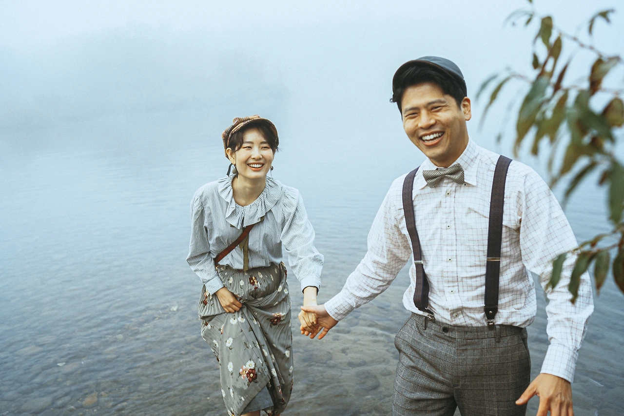 결혼사진을 찍는다면 의뢰하고 싶다고 생각했던 작가가 있었다. SNS에서 우연히 본 작가님의 빛바랜듯한 빈티지한 색감의 사진에서는 어떤 이의 삶과 행복이 고스란히 느껴졌다. 그 순간을 온전히 즐기고 있는 사진 속 인물들은 각자의 동화 속에서 환하게 웃고 있었다. 어떤 것을 보며 웃고 있을까, 어떤 말을 속삭이며 행복해하고 있을까, 그들이 손을 잡고 함께 향하는 곳은 어디일까. 사진 속 인물이 추억하는 공간에서, 때론 사랑하는 사람들과 함께, 때론 그들의 취향이 그대로 묻어나는 옷을 입고 찍은 사진들은 그들이 살았던 과거의 삶을 상상하게 만들었다. 사실 전에는 사진을 찍는 기술을 배운 입장에서 결혼사진을 누군가에게 돈을 주고 맡긴다는 것이 조금 아깝다는 생각을 했었다. 하지만 이젠 우리 부부의 이야기도 사진으로 남겨놓을 수 있을까 궁금해졌다. 자욱한 새벽의 안갯속 나뭇가지가 빽빽하게 우거진 숲에 무르익은 적갈색의 낙엽이 레드카펫처럼 깔린 길을 걷는 웨딩드레스를 입은 신부의 모습이 자꾸만 머릿속에 맴돌았다. 남편에게 보여주니 신기해한다. 이런 결혼사진은 처음 본다며, 자기도 기꺼이 찍어보겠다고 한다.