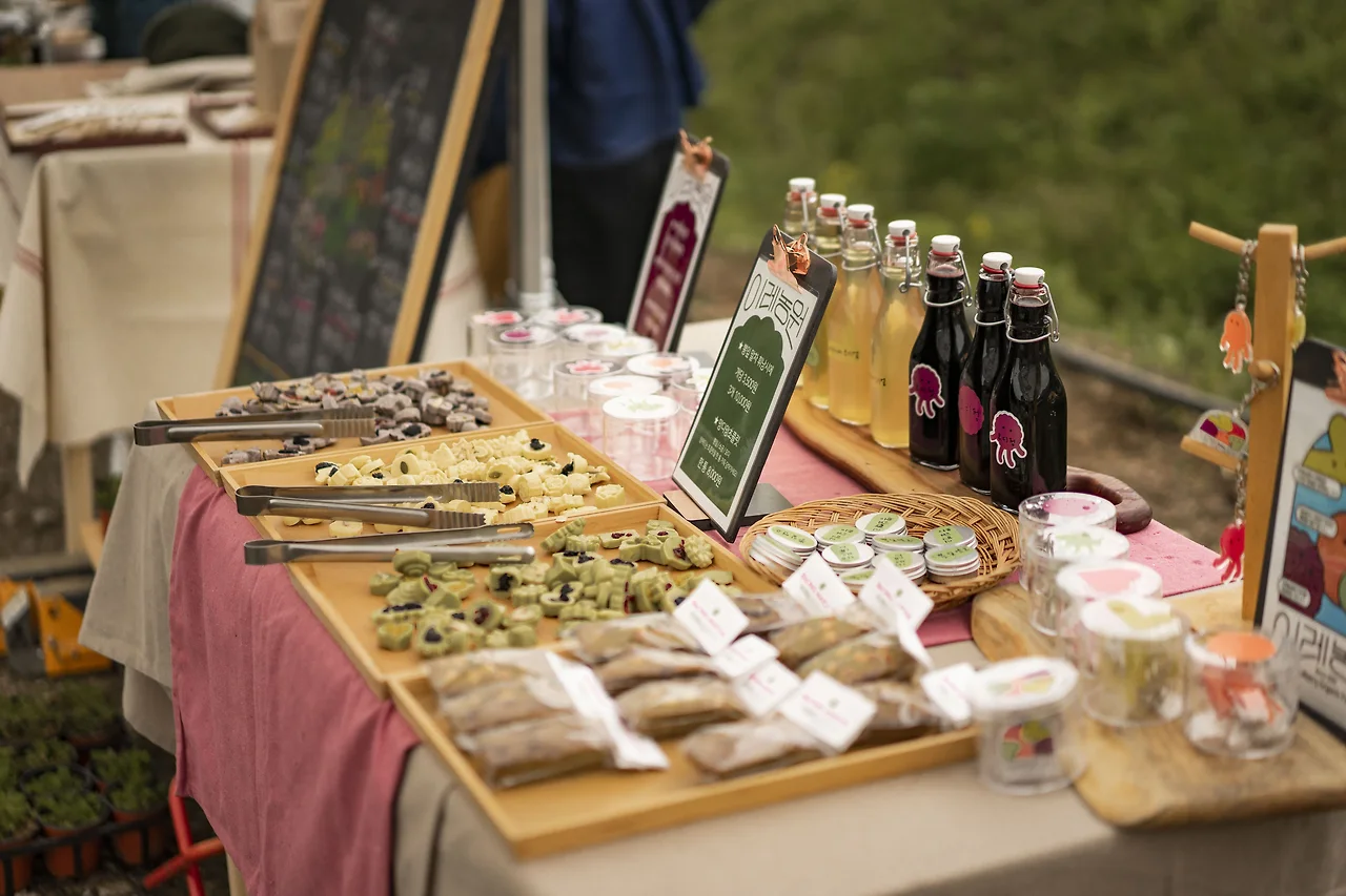 사진기록을 하려고 부스 하나하나 유심히 살펴보았다. 정말 정성스럽게 만든 음식들과 예쁜 농작물들, 예쁜 그림이 그려진 호미와 톱낫, 씨앗과 모종까지. 하나하나 직접 만들었을 농부들의 애정이 그대로 느껴지는 작품들이다. 무엇보다 음식들이 모두 비건이라서 좋다. 비건이 기본이고 육식이 옵션인 사회가 좀 더 정상적인 사회라고 생각한 적이 있다. 평상시에 비건으로 먹으려면 이거 빼주세요, 저거 빼주세요 등등 덜어내기에 바쁜 불필요한 식재료들이 많은데, 굳이 그것들을 넣지 않아도 충분히 맛이 있고, 더 건강하니 말이다.