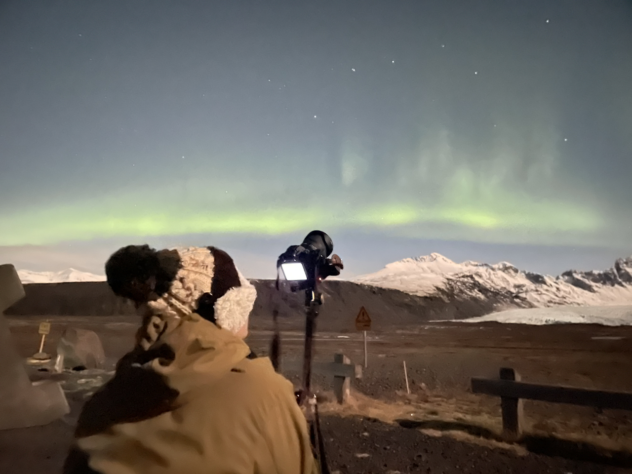 그러기를 약 30분, 또다시 어렴풋한 빛이, 이번엔 녹색의 빛이 일렁인다. 오로라다! 를 외치며 뛰쳐나간다. 옅은 녹색의 빛을 아이폰으로 확인해 보고서 우리는 오로라를 확신했다. 그 순간을 놓칠세라 부랴부랴 삼각대를 펼치고 카메라 셔터를 눌렀다.
