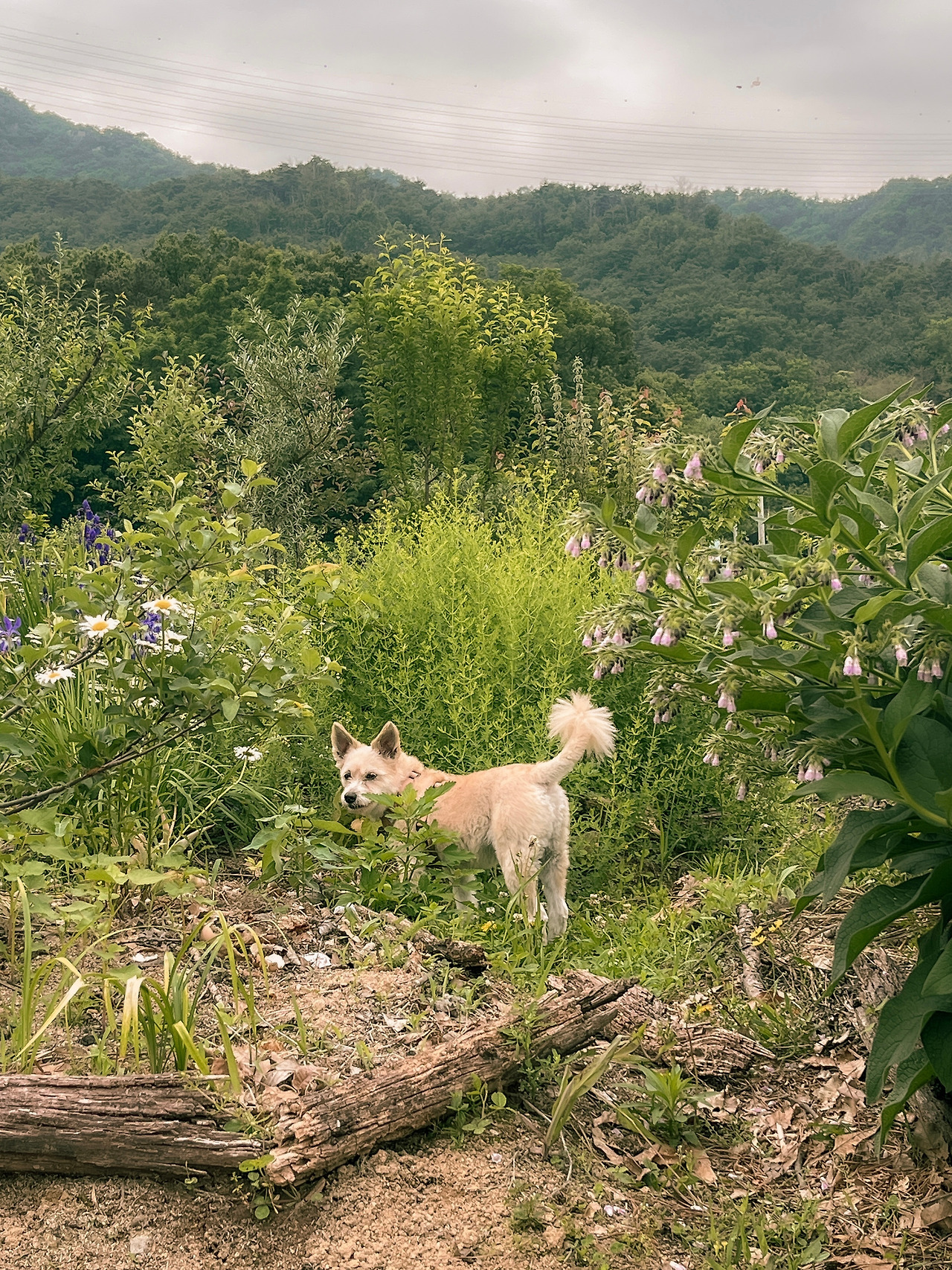 요 며칠 사이 텃밭에 여러 친구들이 놀러 왔다. 긴 산책을 못 시켜줘서 답답해한다는 누룽지는 수락산 아래 퍼머컬처 밭에 도착해서 차에서 내리는 순간 표정이 달라지는 것이 한눈에 보였다. 까만 콧구멍으로 흘러 들어오는 공기부터 다르다는 것을 알았던 걸까. 누룽지는 열심히 이곳저곳을 탐색하며 킁킁 냄새를 맡고 맛을 보는데 여념이 없었다. 다양한 허브가 향을 뿜어내는 텃밭 한가운데 서있는 누룽지의 모습이 아름다웠다.