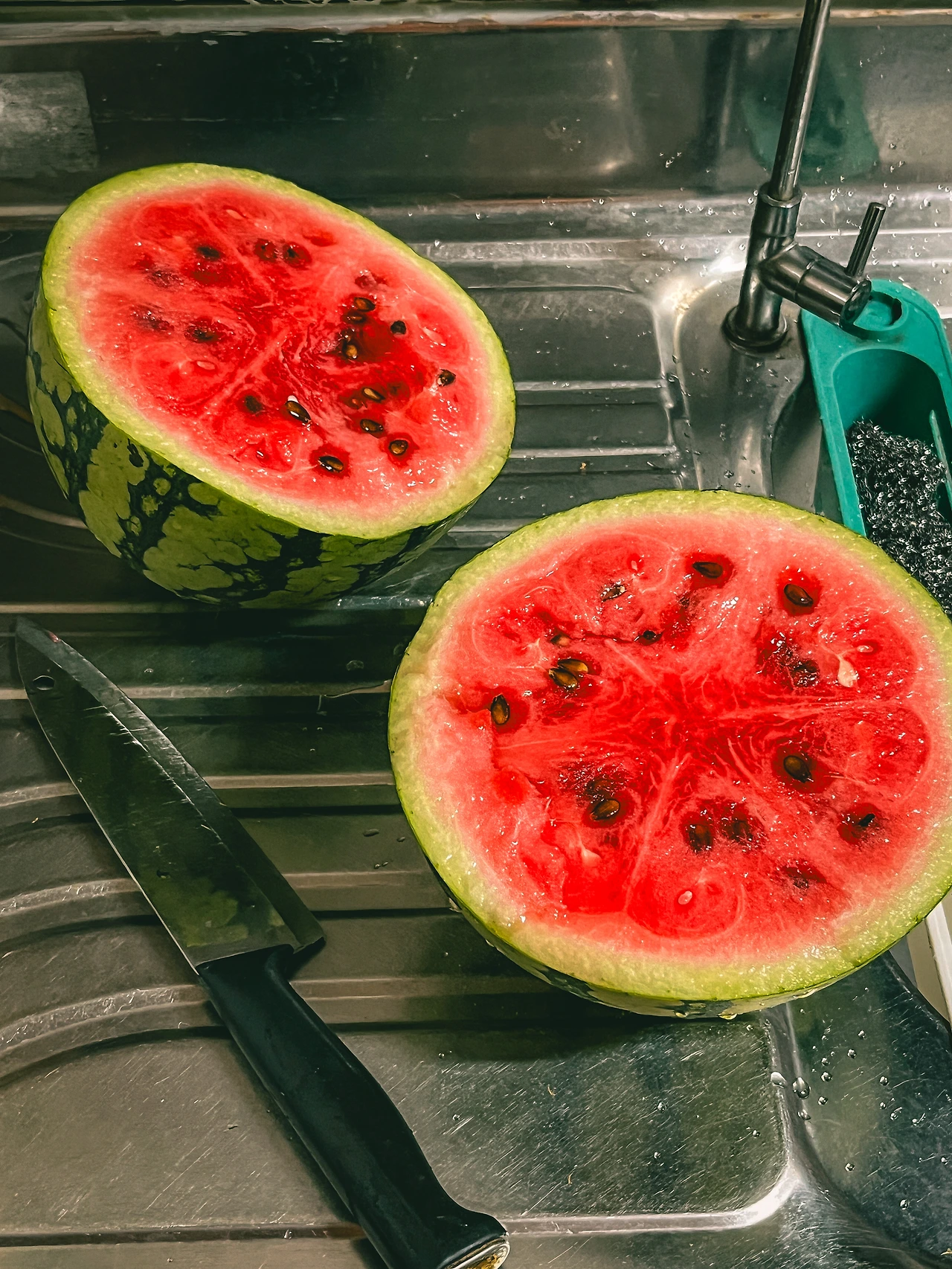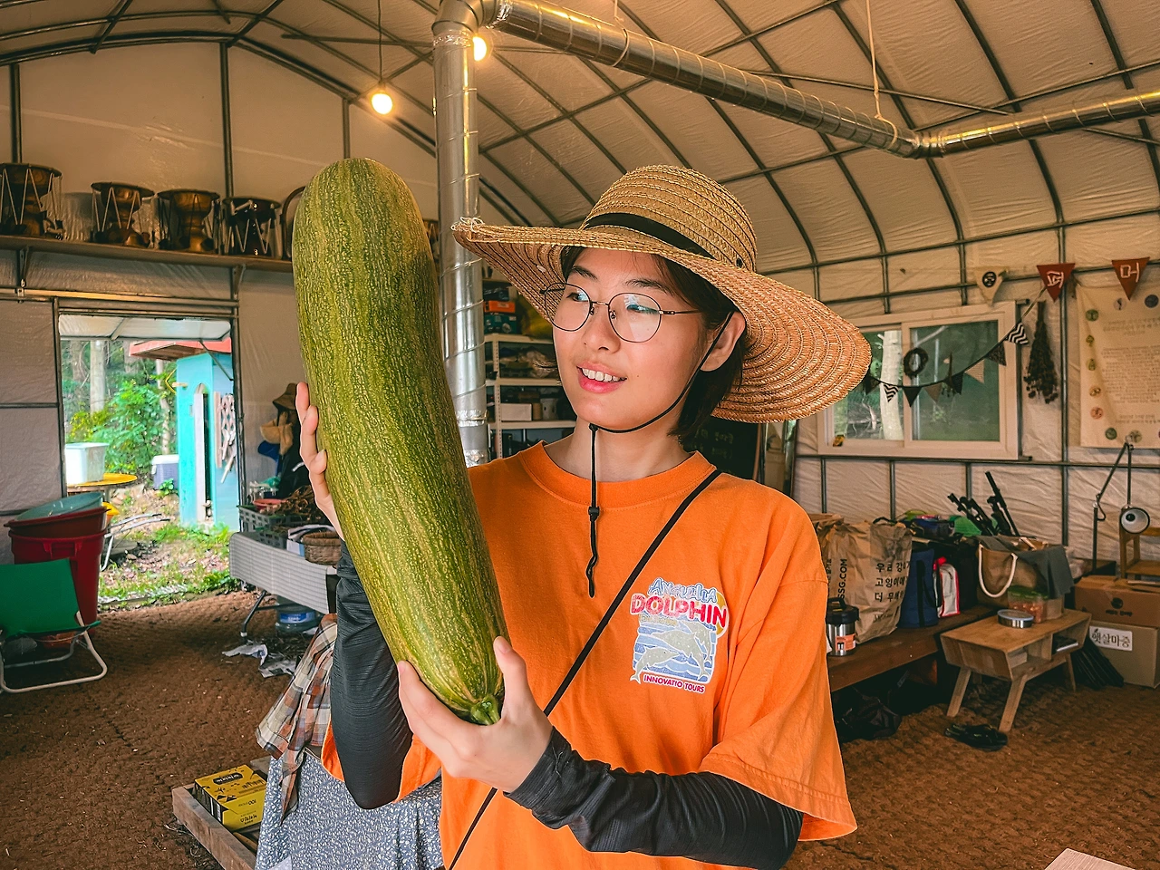 내가 제일 기대했던 수박은 마트 수박처럼 커질 것 같지 않아 배구공만 해졌을 때쯤 참지 못하고 따버렸다. 바쁘다는 핑계로 잘 찾아뵙지 못하는 할머니와 고모에게 가져다주었다. 고모가 칼을 집어넣자마자 쩍- 하고 갈라지니 잘 익었다며 놀라신다. 한 숟갈 퍼먹으니 그 단맛이 입에서 살살 녹는다. 어서 남은 수박들도 무럭무럭 자라서 엄마와 밭 동료들에게도 나누어주고 싶었다.