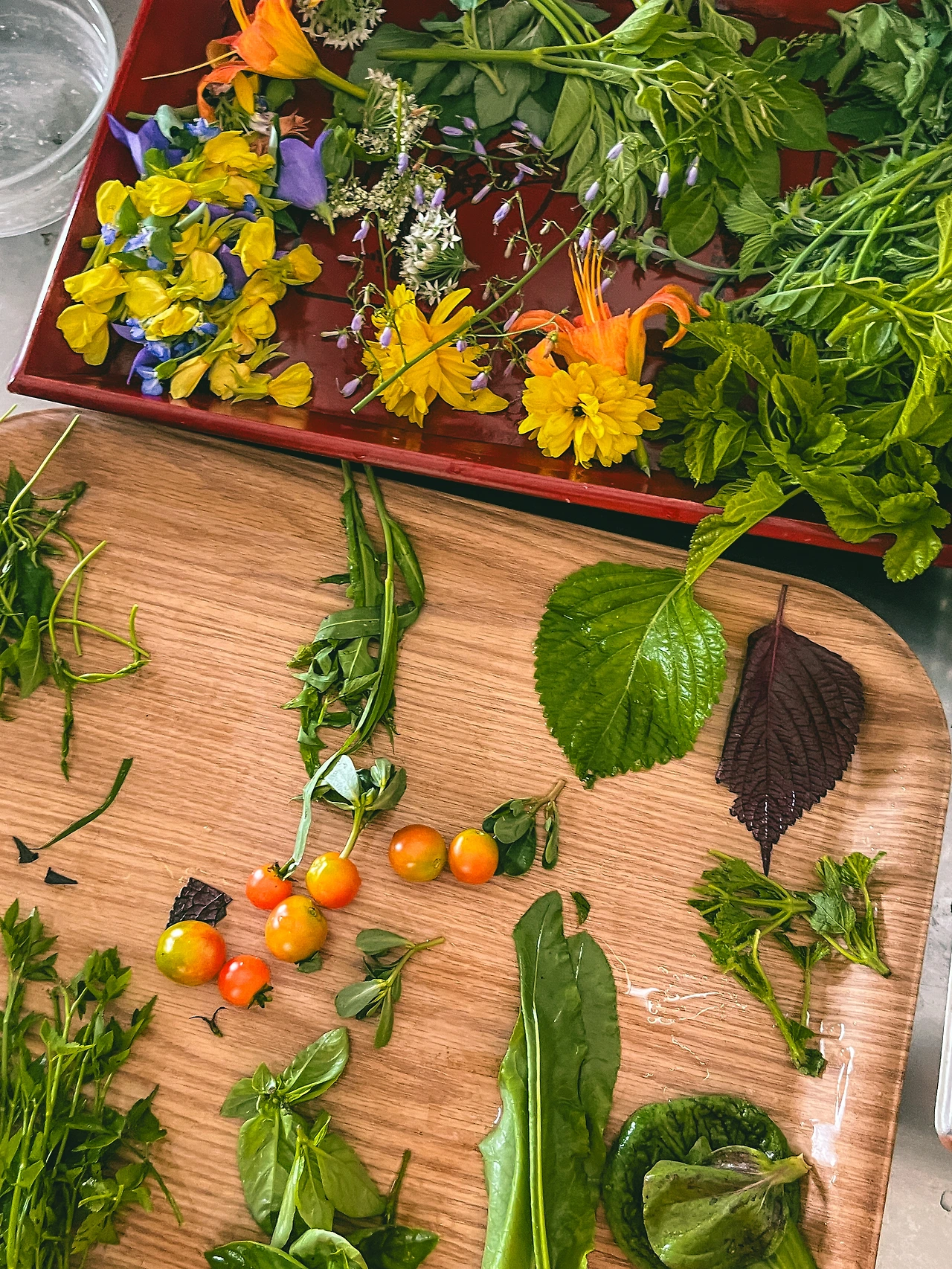 이외에도 깻잎, 자소엽, 고추, 부추, 당귀, 눈개승마, 방아, 민트, 호박잎, 호박꽃 등 밭의 선물은 감사하다.