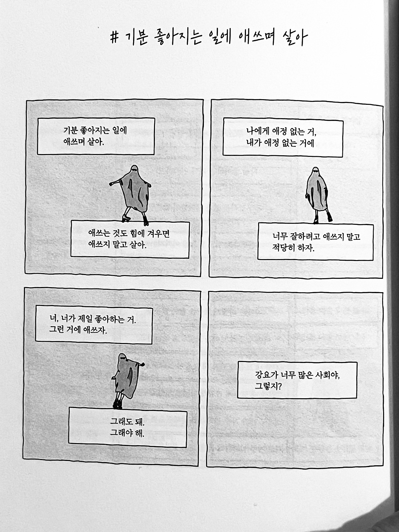 이제는 좋아하는 일에 애쓰며 살자. 별로인 일에 애쓰기엔 생이 너무 짧지 않은가.