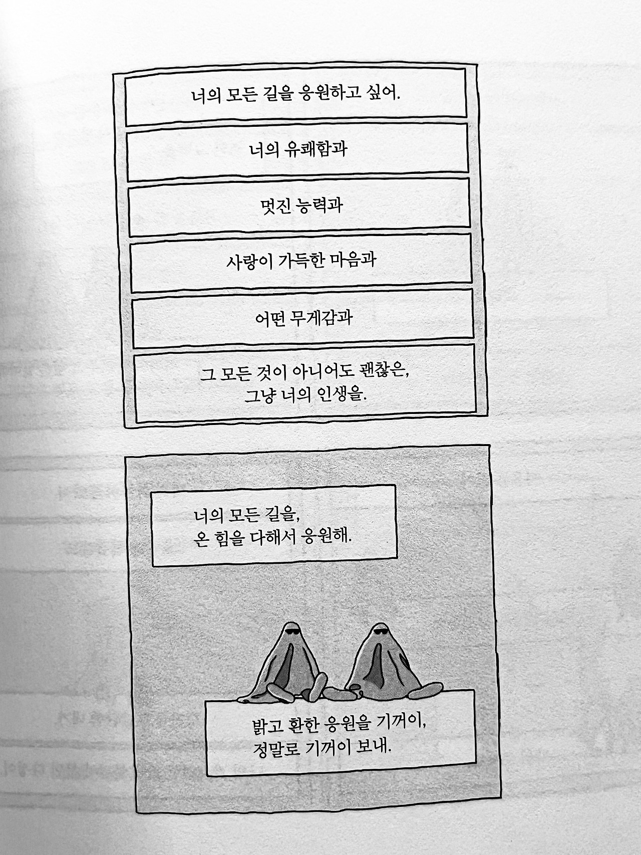 눈을 사로잡지 않는 담백한 그림과 문체로 그 무엇보다 깊게 위로할 수 있을까 하는 궁금증에 이 책은 답하고 있었다.