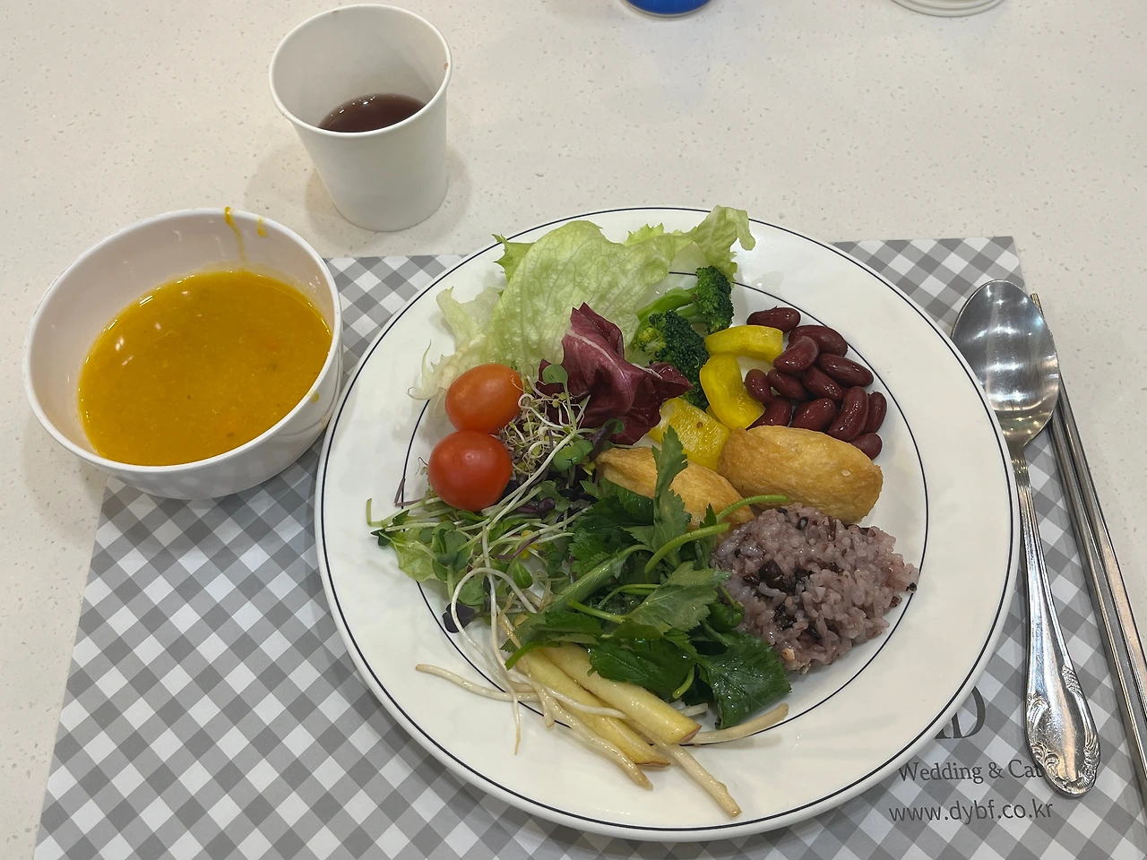 점심때 결혼식장에 가야 해서 살짝 걱정이 되었다. 육식과 기름진 음식이 대부분인 결혼식장에서 내가 먹을 수 있는 게 있을까? 보통 샐러드와 밥은 있으니 그 정도만 먹을 생각으로 집을 나섰다.