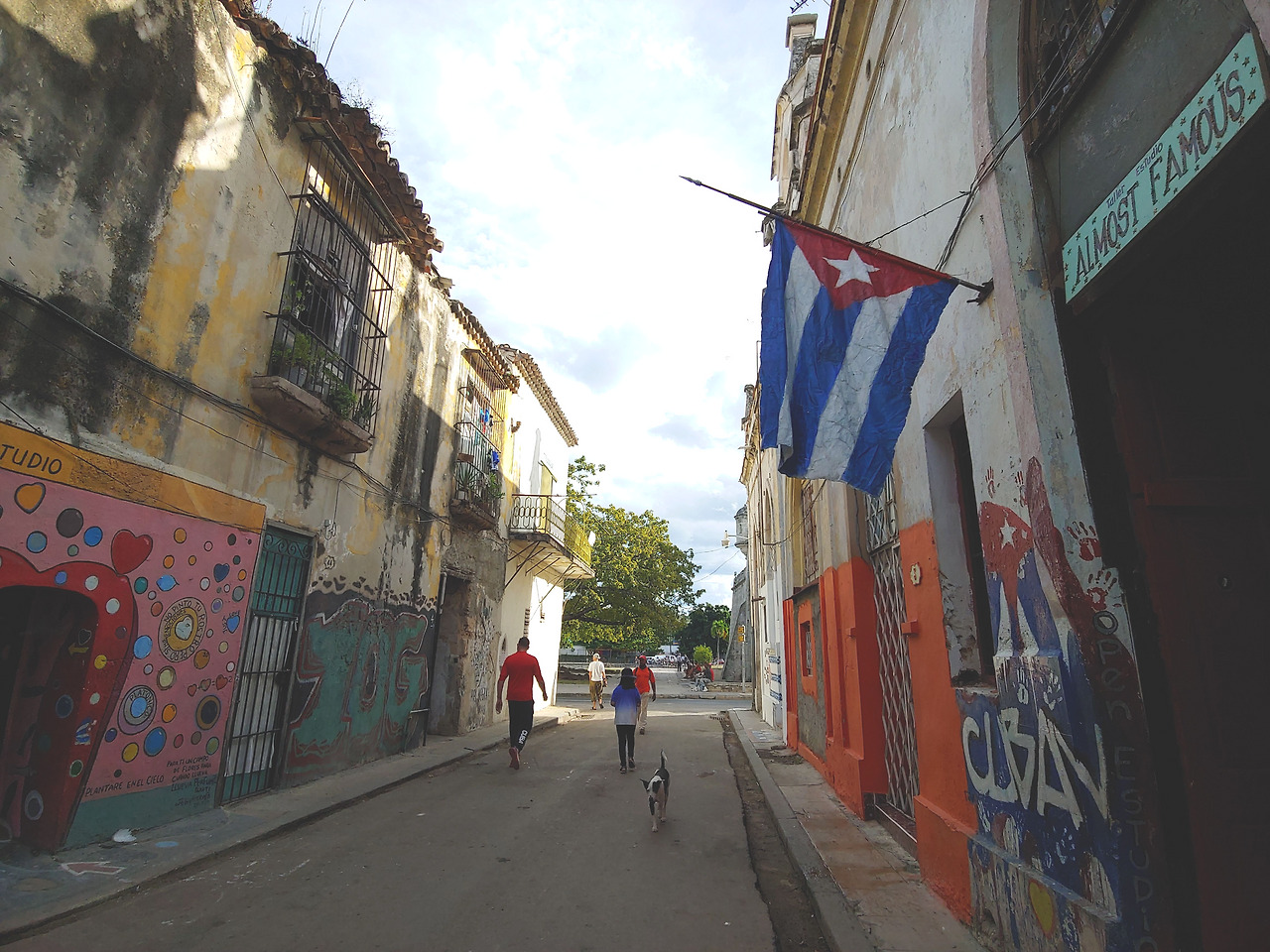 숙소가 있는 올드 아바나 오비스포 거리에서 캄피톨리오 광장으로 걸어가는 길은 그 자체로 훌륭한 여행지다. 건물을 뚫고 나오는 라이브 음악에 몸을 흔들어 대는 사람들로 정신이 없다. 온 거리에 춤과 음악이 넘쳐흐르고 있다. 오래되어 색이 바랜 유럽풍의 건물들은 그 자체로 멋스럽다. 보기에 따라서는 지저분하고 위험해 보일 수도 있으나, 쿠바에 대한 객관성을 잃은 나의 눈에는 모든 것이 매력적이다.