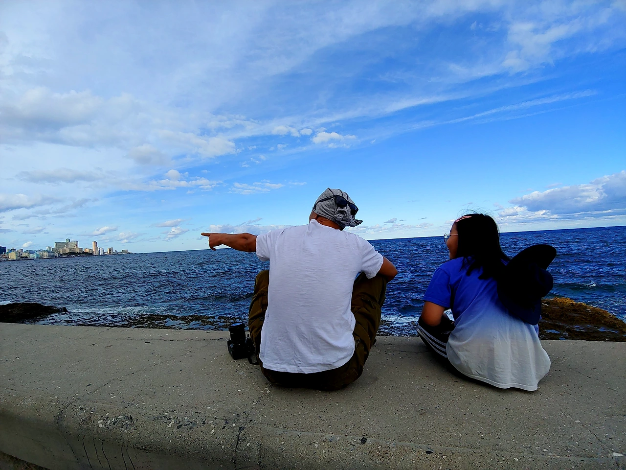 “옆을 봐봐!”라는 남편의 말에 고개를 돌리는 순간 눈을 의심한다. 짙은 남색 잉크 빛의 바다가 펼쳐져 있다. 짙은 남색 때문인지 말레꼰에 부딪히는 포말의 하얀색이 더 두드러진다. 파도가 하얗게 부서지는 말레꼰을 따라 올드 카가 달린다. 그 위로 쿠바 음악이 흐른다!