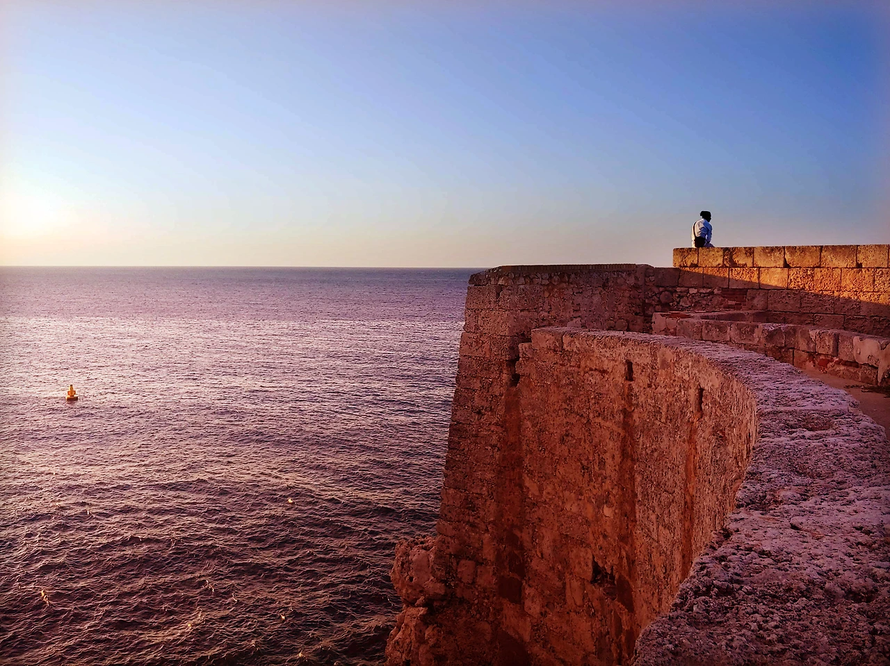 멀리서 실루엣으로만 보던 모로 요새는 생각보다 규모가 크다. 요새 끝에 서니 바닷가 절벽에 서 있는 듯하다. 해지는 곳을 바라보며 앉아 있는 사람들 틈에 자리를 잡고 앉는다. 노을빛에 물드는 모로 요새처럼 우리도 노을빛에 물들고 있겠지.