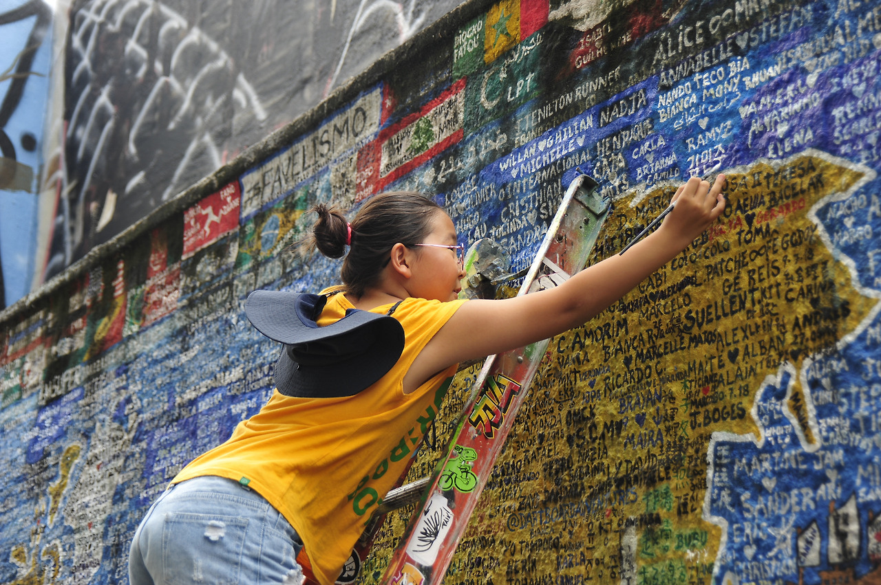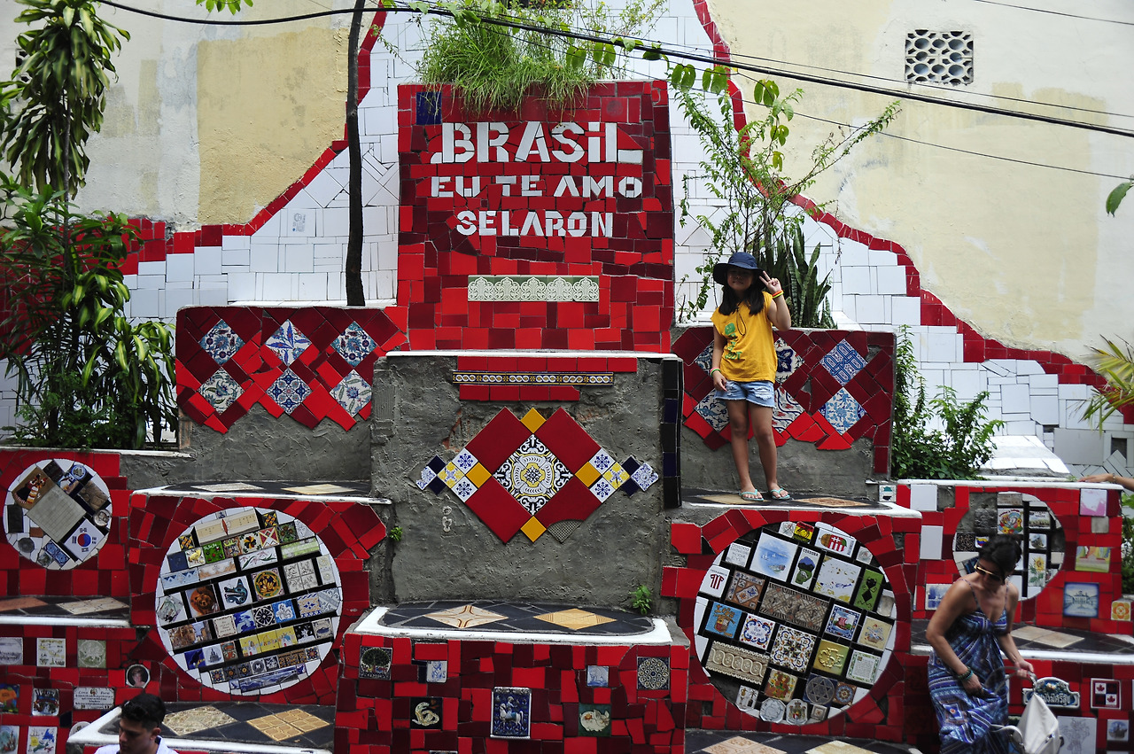 셀라론 계단으로 가는 길 벽에 전 세계에서 온 관광객들의 이름으로 채워진 세계지도가 있다. 한글로 된 이름도 보인다. 운 좋게도 벽화 작업을 하는 작가를 만나, 딸아이 이름을 세계지도에 한글로 써넣는다. 작가는 딸아이에게 붓을 건네며 이름 마지막 글자를 직접 쓰게 한다. 예술가의 세심한 배려에 우리 모두 “오브리가다(감사합니다)!”