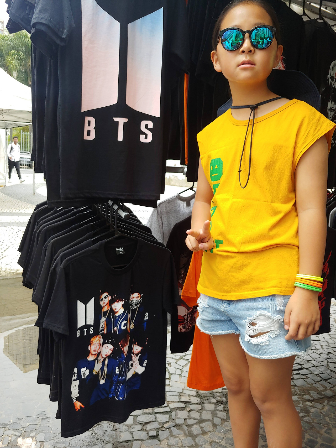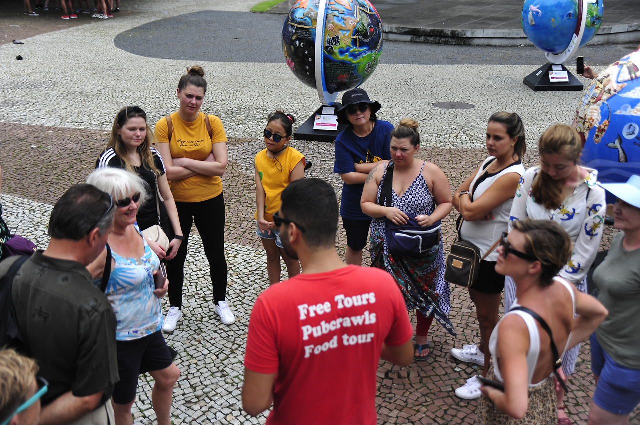 젊음의 상징인 조리는 집에 고이 모셔 두고, 편한 샌들을 신고, 프리워킹투어 집결 장소인 Carioca 광장 시계탑으로 향한다. 브라질 젊은이들이 주축인 프리워킹투어는 영어, 스페인어, 포르투갈어로 나누어 진행된다. 3시간 정도 소요되는 프리워킹투어는 말 그대로 무료이기에 투어가 끝난 뒤 만족한 만큼 팁을 주면 된다. 꽤 많은 사람들 중 동양인은 우리 가족뿐이다. Carioca 광장 노점에 BTS 티셔츠가 걸려 있다. 낯선 이국에서 BTS 글자만 봐도 웃음이 나온다.