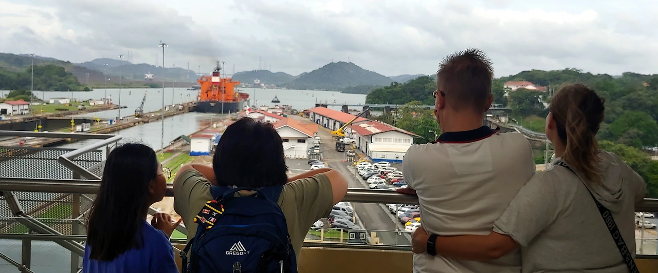 운하를 통과하는 배를 볼 수 있다기에 전망대로 간다. 전망대에 도착하니 컨테이너선이 대서양 방향으로 통과하고 있다. 배가 운하를 통과하는 과정을 놓친 게 아쉽다 생각하던 차에 또 다른 컨테이너선이 대서양 방향에서 들어오고 있다. 시선을 멀리 두니, 파나마 운하를 통과하기 위한 대형 컨테이너선들이 제법 눈에 띈다.