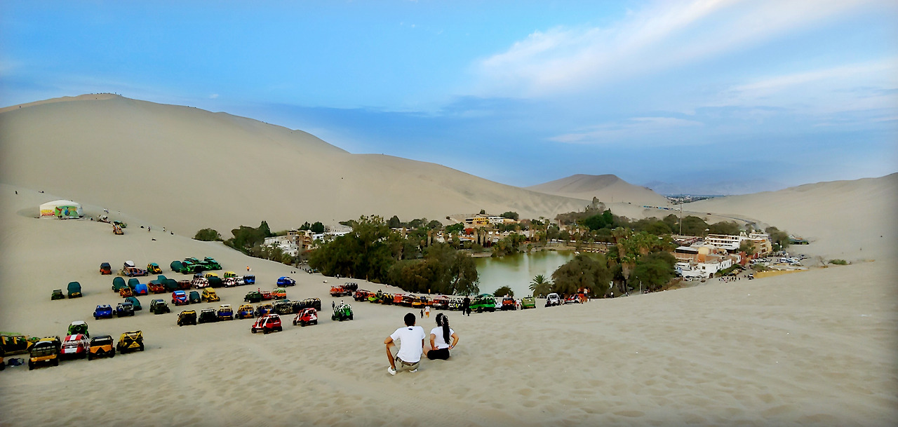 이카 사막의 오아시스, 와카치나 마을에 도착하니 낙타는 없고 버기카가 있다. 낙타 등이 아닌 버기카에 오른다. 놀이동산에 온 듯 버기카로 롤러코스터를 타고 보드에 엎드려 가파른 모래 언덕을 미끄러져 내려간다. 모래에 누워 하늘을 보고, 데굴데굴 구른다. 어린 시절에도 해 본 기억이 나지 않는 행동들이다. 머리에서 발끝까지 모래로 샤워를 한다. 뒤처리 걱정을 잊은 채 현재를 즐겨본다. 여행에서 누릴 수 있는 일탈이다.