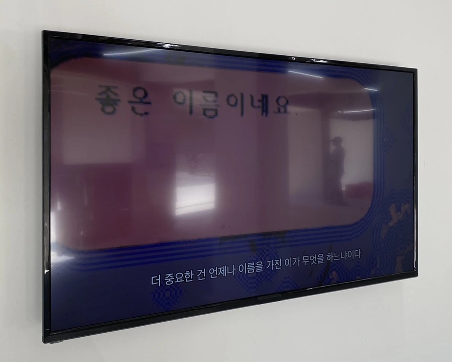 내가 가장 인상적으로 본 작품은 바로 이 영상작업이다. 갤러리의 문을 열고 들어서면 바로 보이는 작품인 이것은 나를 적잖이 충격에 빠뜨렸다. 최이다는 이름 없는 창조물에게 편지를 보내고 이름이 필요한 목소리로부터 답장을 받는다. 이는 마치 영상을 바라보는 관객에게 말을 건네는 듯하기도 하고 스스로에게 건네는 독백 같기도 하다. 태어나면 당연하게 가져버리게 되는 ‘이름’을 소재로 원래는 무(無)의 것을 유(有)의 것으로, 나아가 의미를 가진 진정한 유(有), 존재(存在)로 나아감을 나타낸다.