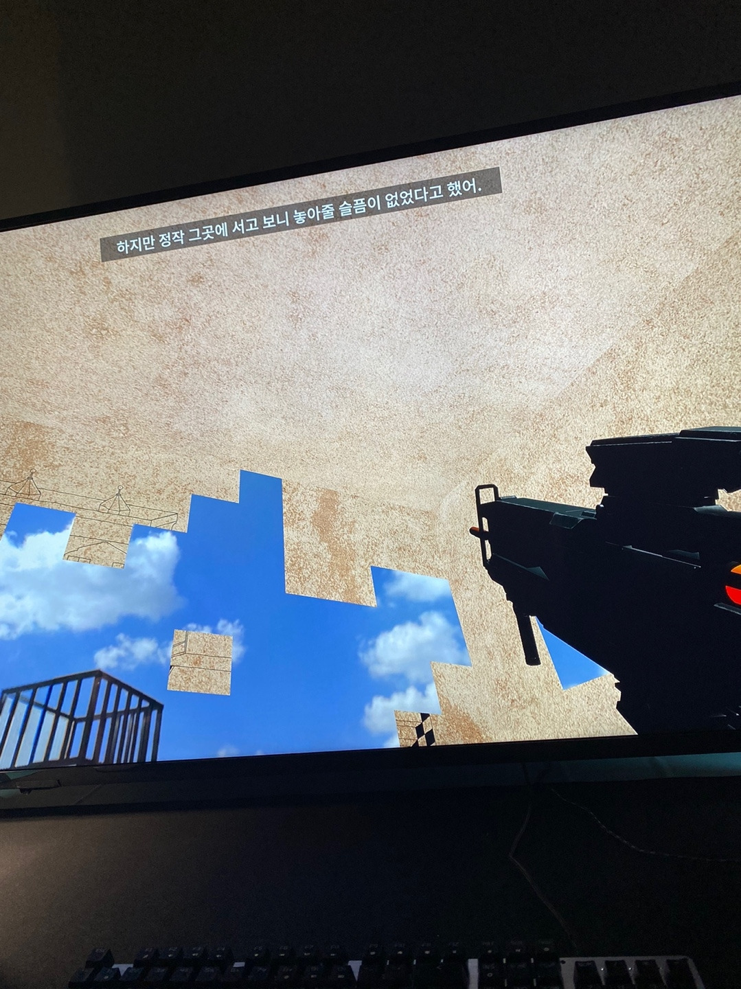김지선은 이 전시에서 자신이 개발한 게임을 기반으로 진행되는 영상 <슬픔의 집 - 집>(2021)을 통해 관람자를 플레이어의 자리에 위치시키기도 한다.