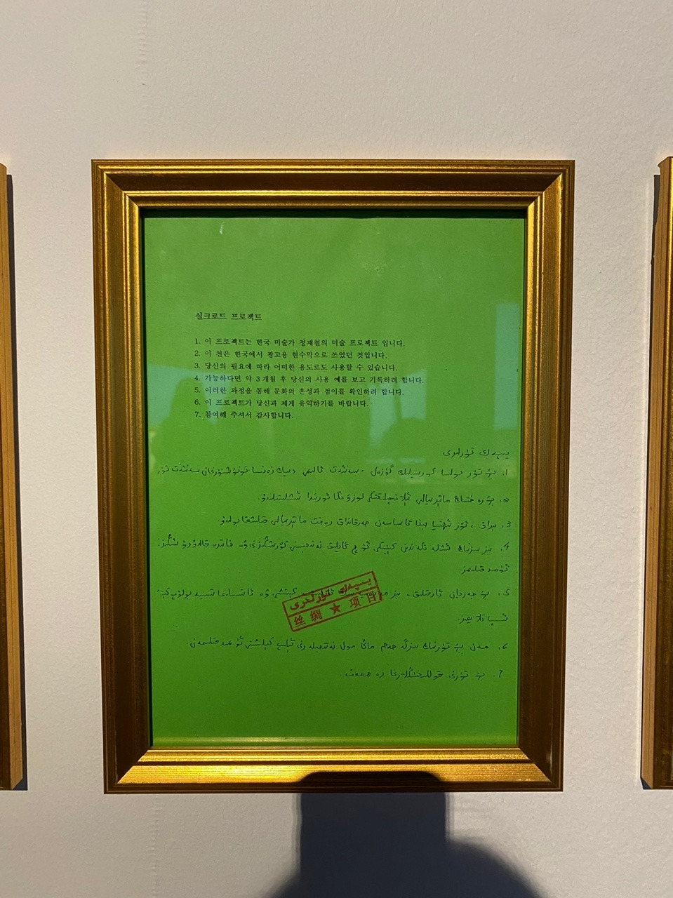 제1전시실에서는 정재철의 <실크로드 프로젝트>를 사진, 영상, 루트맵, 여행일지 등으로 재맥락화한다. 이번 전시에서 그의 기록과 수집된 결과물 하나하나는 나의 가슴을 여러모로 쿵쿵 쳤다.